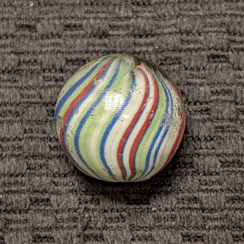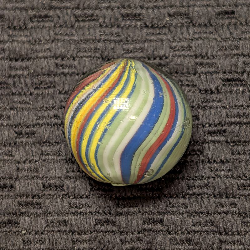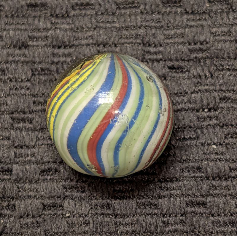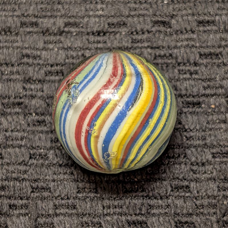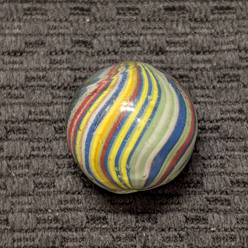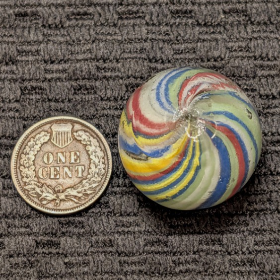 Fantastic Rare 1″+ Colorful Fine-Line Joseph’s Coat with Bright Contrasting Colors and about 50 Threads of Color (I lost count twice). Would have been an $800-$1000 if mint, but only a few small nicks makes this a bargain at $250. NM.