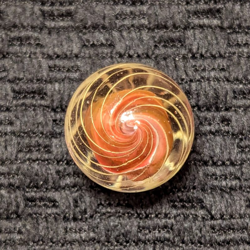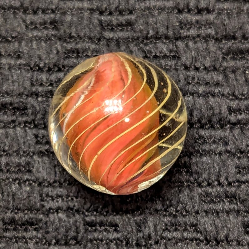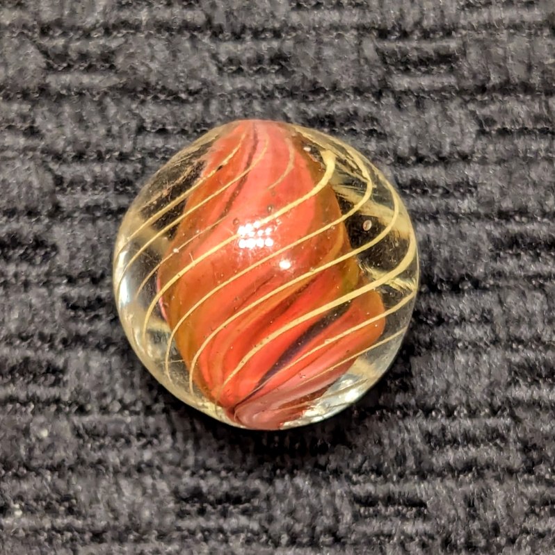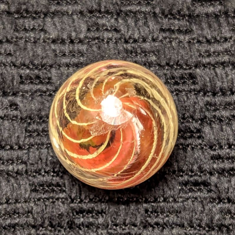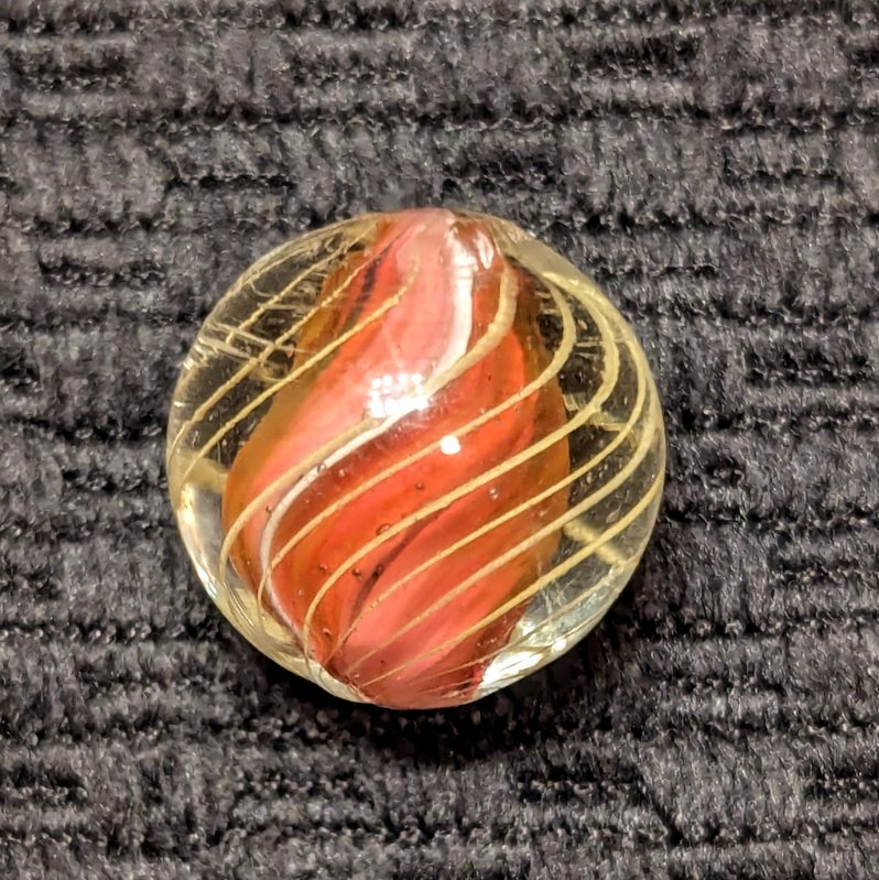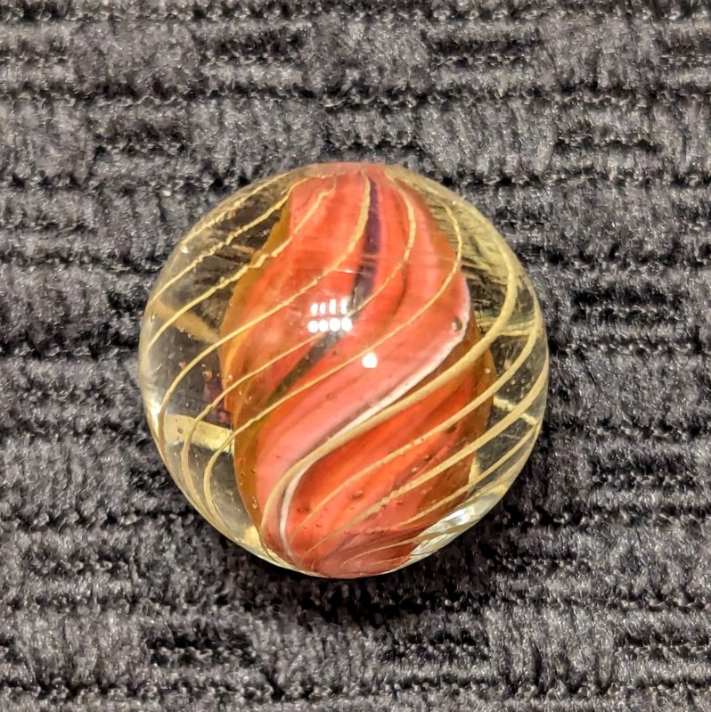 Fabulous Transparent Red Sheathed Solid Core w/ random white and blue stripes and a tight yellow cage with perfect symmetry. Exceptional craftsmanship and early faceted pontil dates this gem condition beauty to 1880 or earlier. Wet Mint.