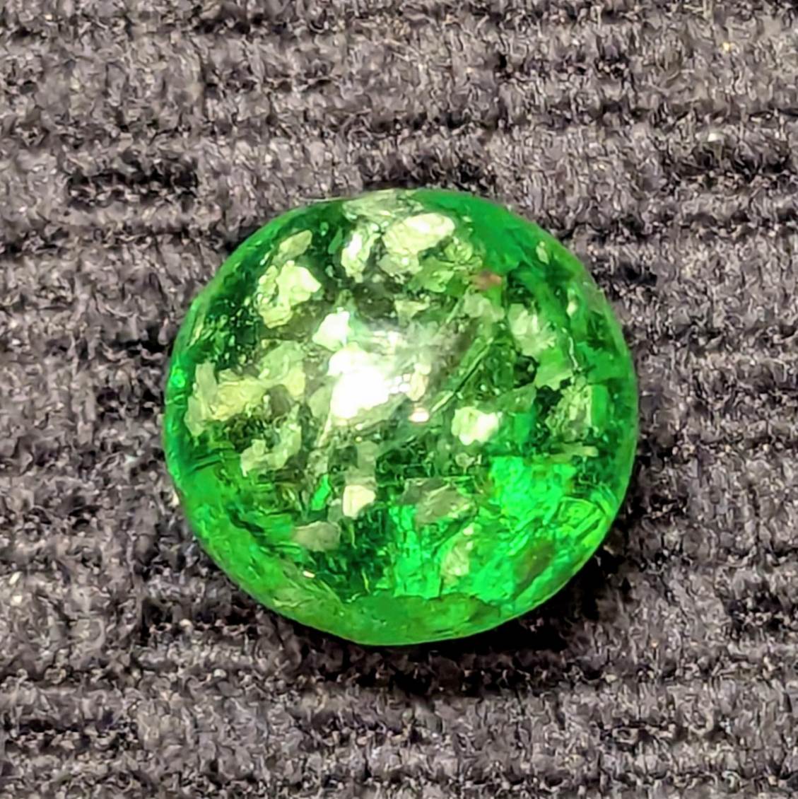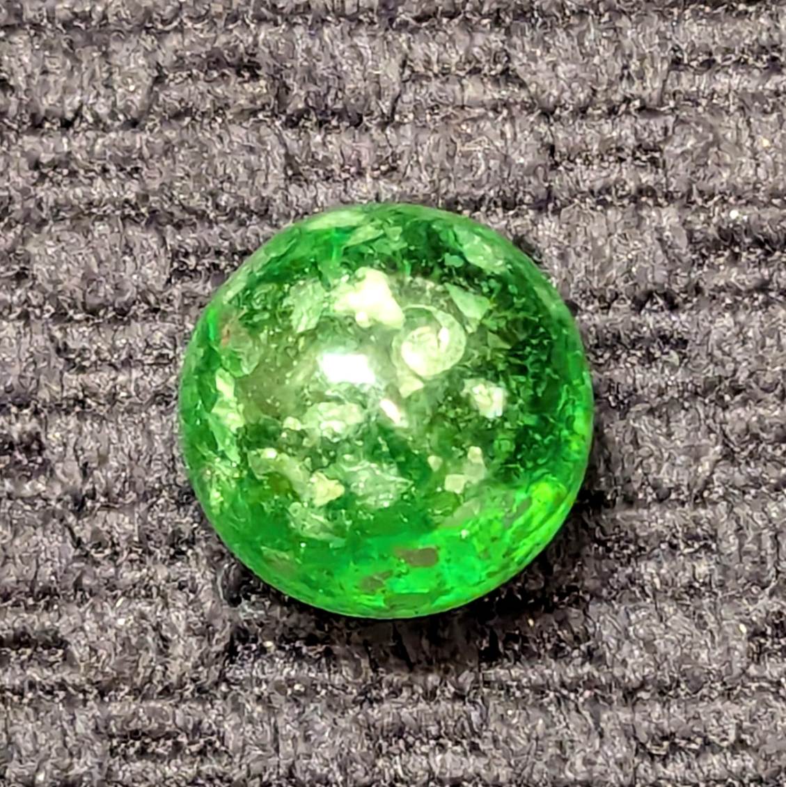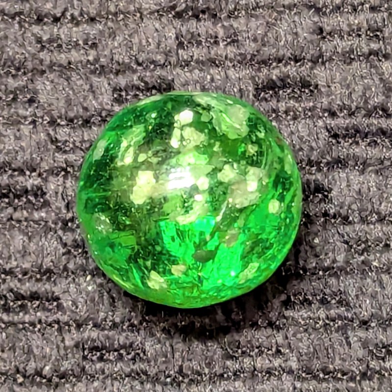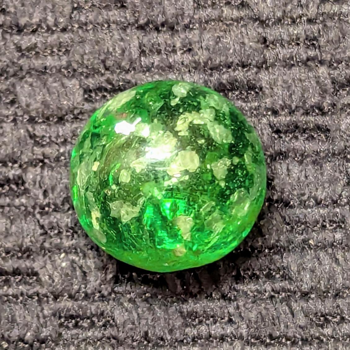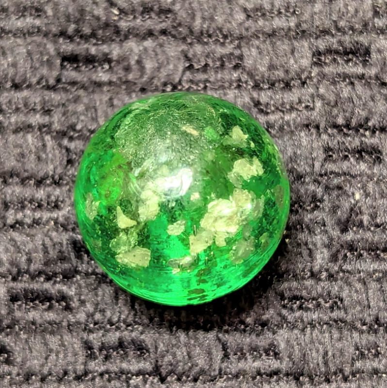 Green Mica with big mica flakes and bright green glass. Wet mint original surface w/ a tiny touch spot. Filled with large mica flakes for its size!