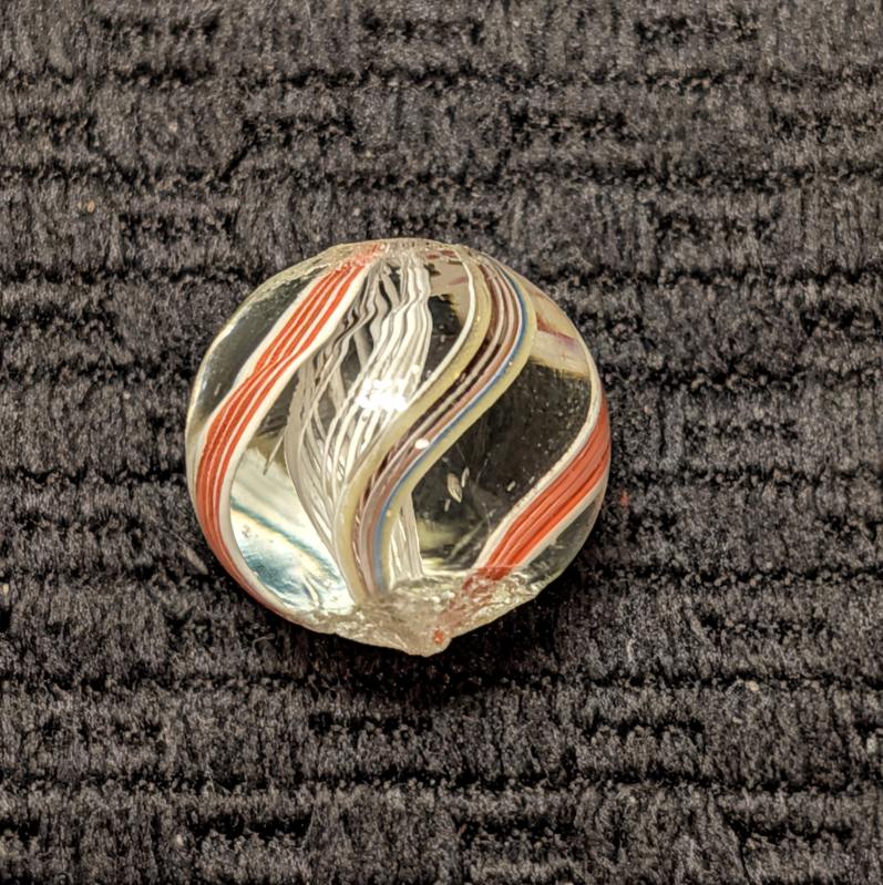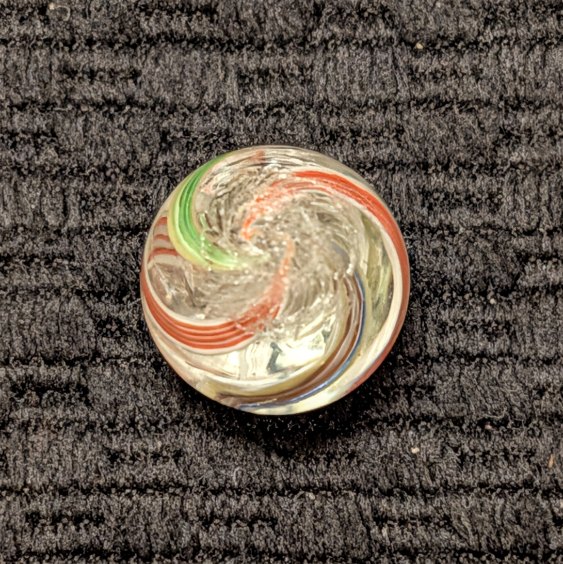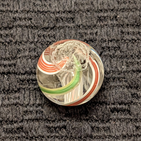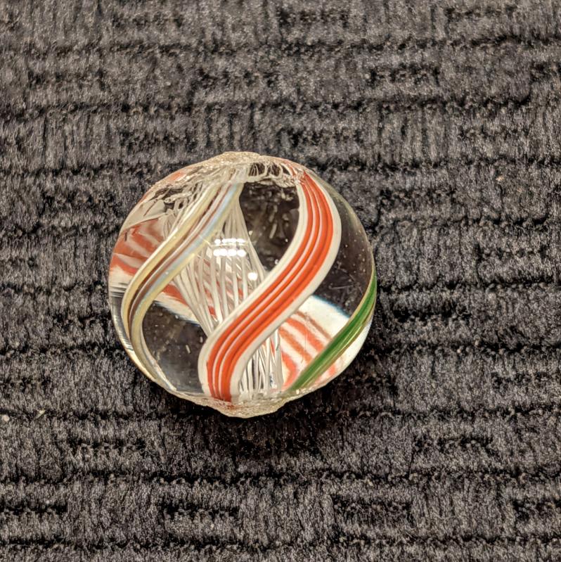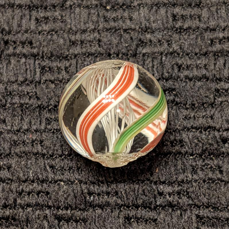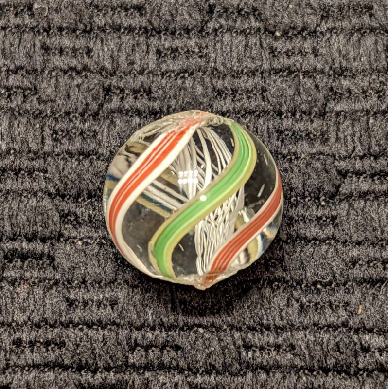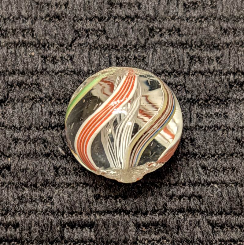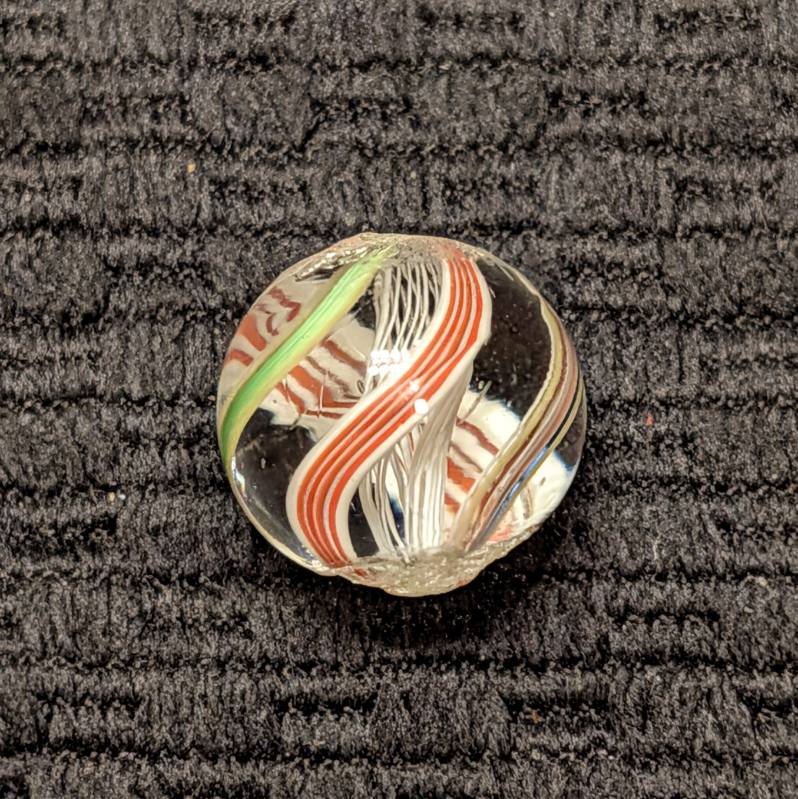 Bright White Latticino Core Swirl w/ Unusual Colorful Striped Ribbons