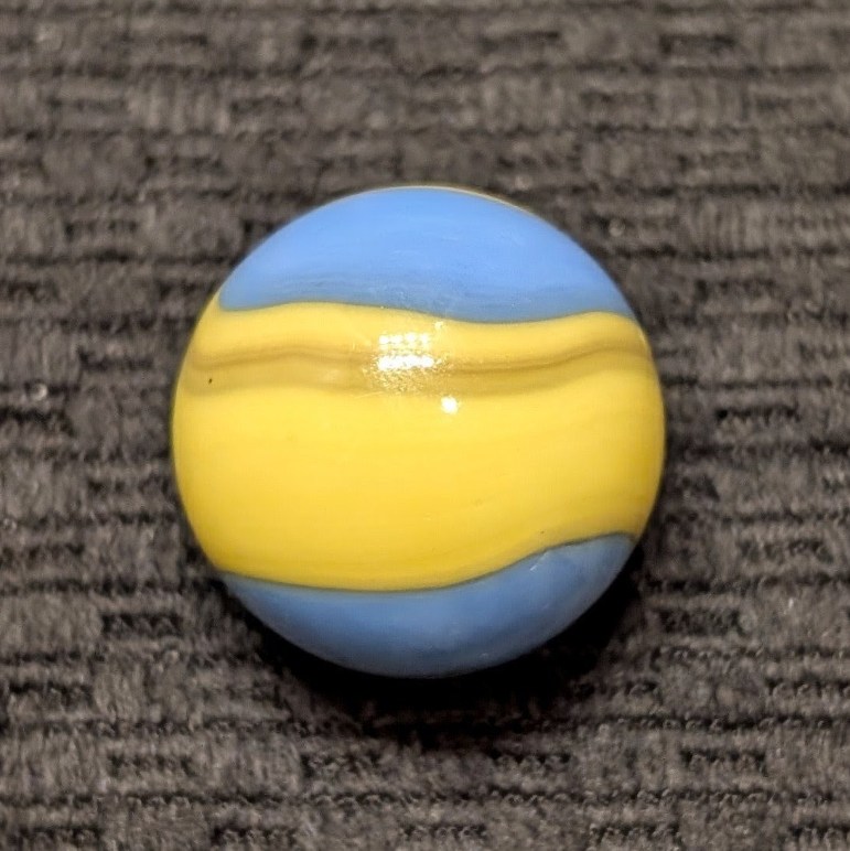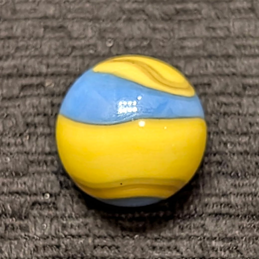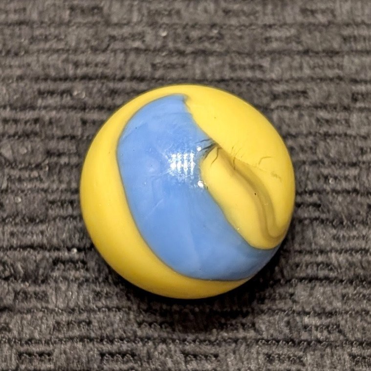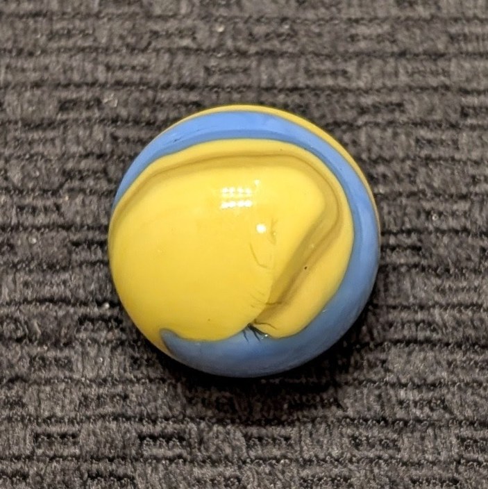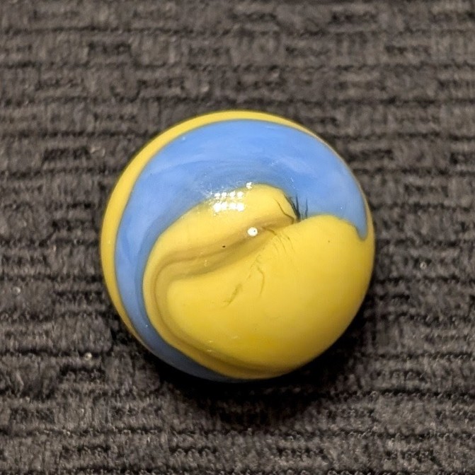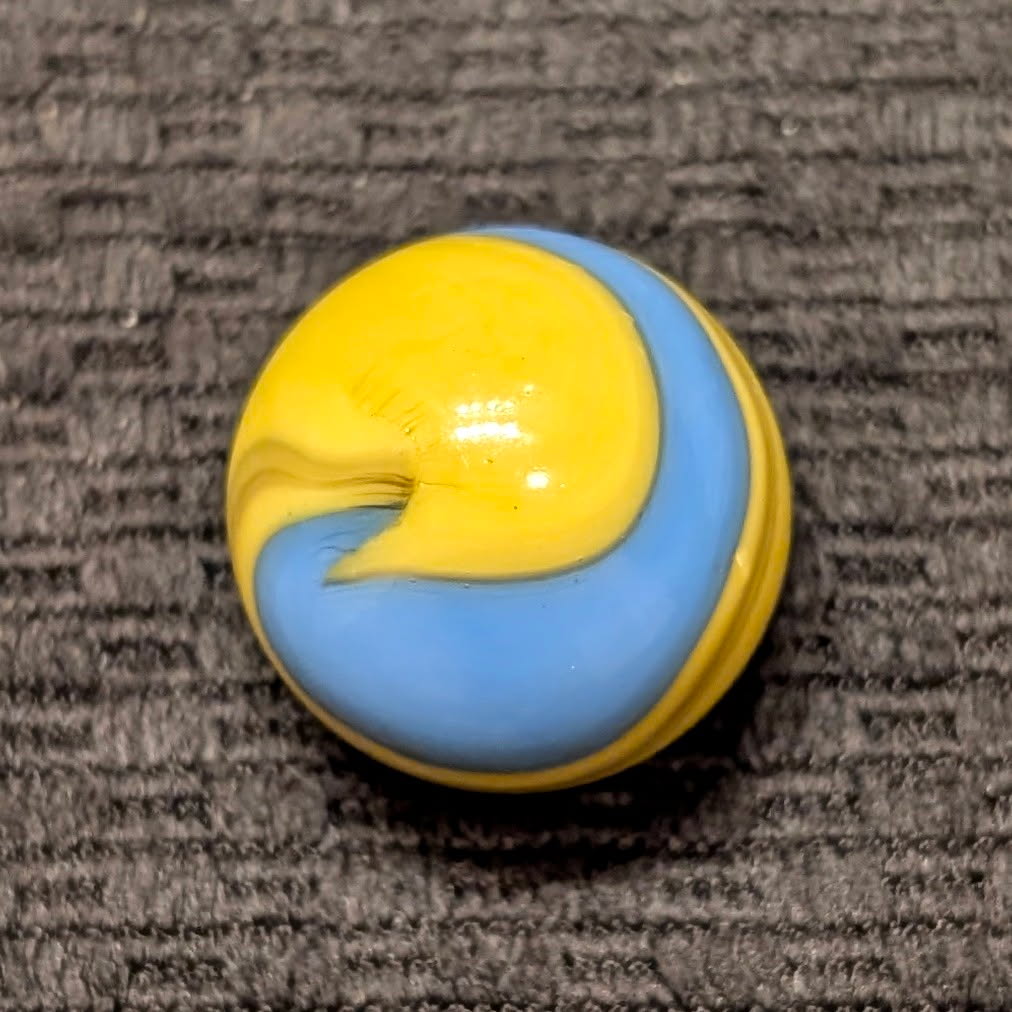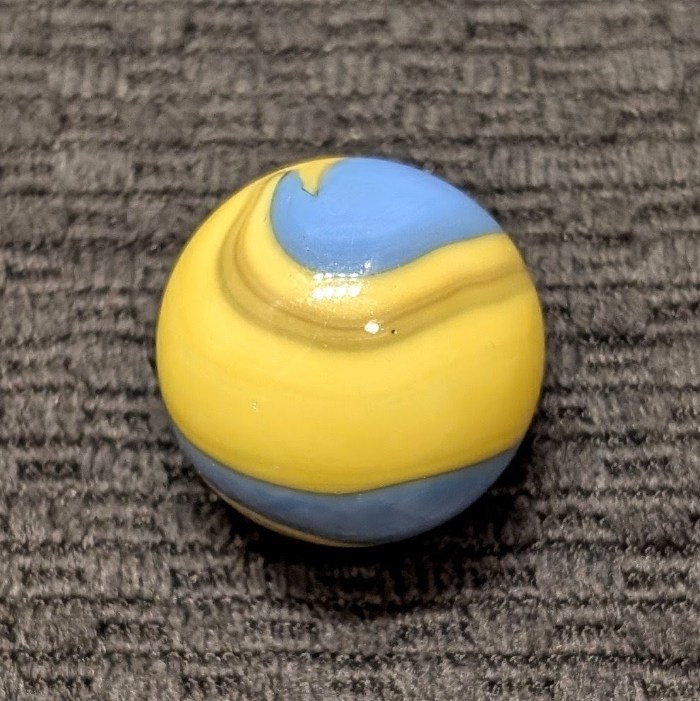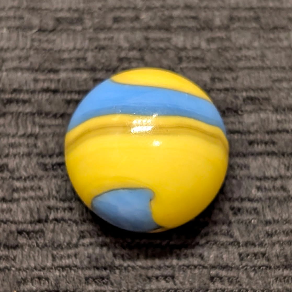 Giant almost 1″ Twisty Blue & Yellow Prizename Corkscrew with a Brown Tracer in wet mint condition! Coin not included.