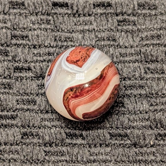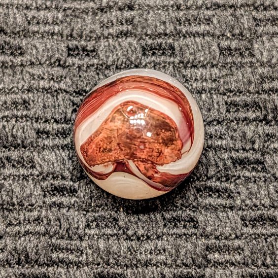 Beautiful Silver Oxblood Swirl w/ Heavy Oxblood and Unusually Nice Pattern Over a Translucent Milky White Base. Wet Mint.