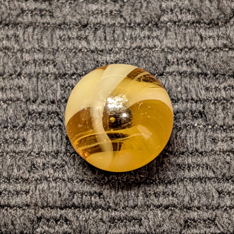 Caramel MFC Slag w/ Strong “9” Spiral and Tail. Very tiny flake. Shiny Mint- original surface.