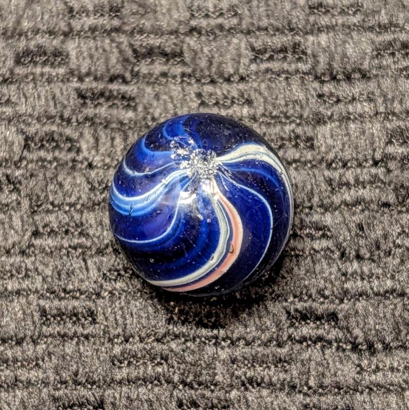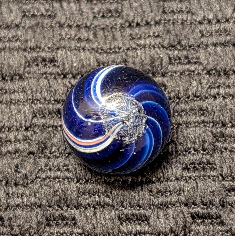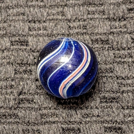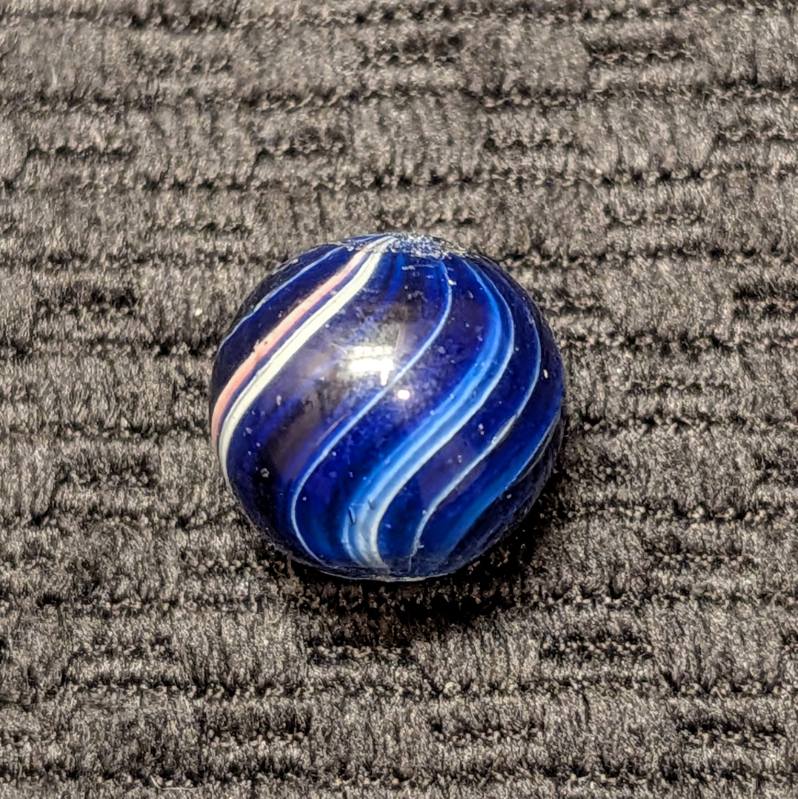 Heavy Cobalt Over White Onionskin w/ Red & White stripes. Striking visual appeal. Mint.