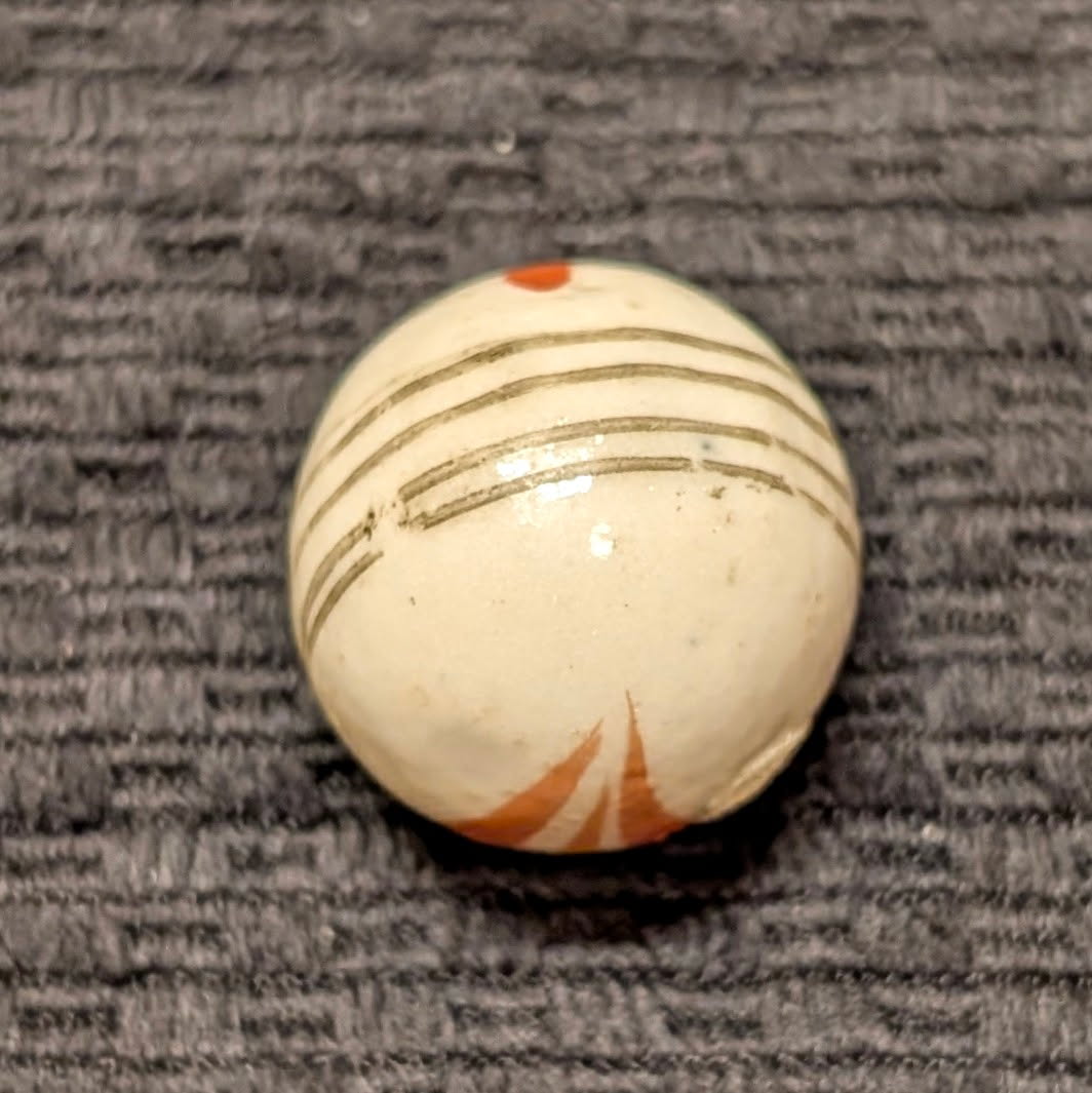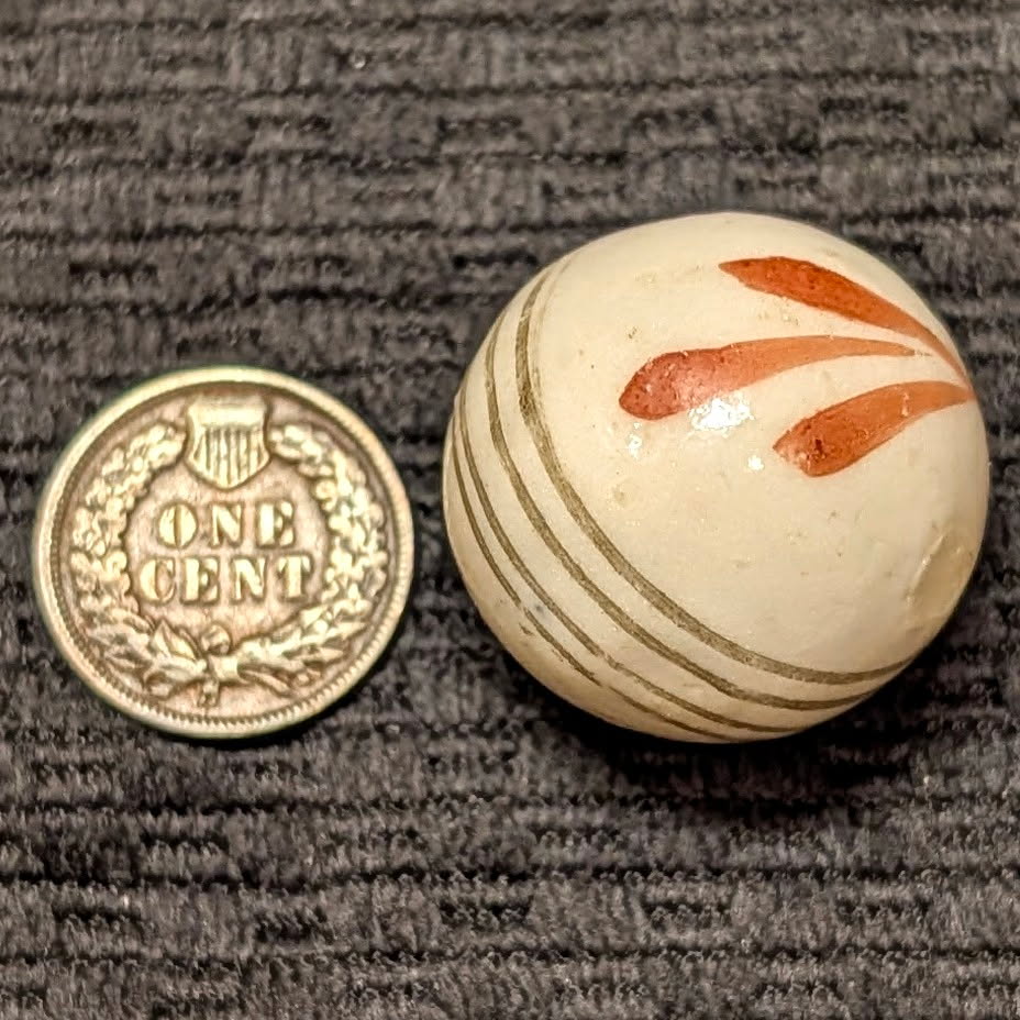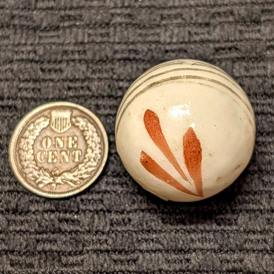 Huge 1″ Glazed China w/ Red Leaf Sprays & Black Equator Lines – Rarely Seen this Big!