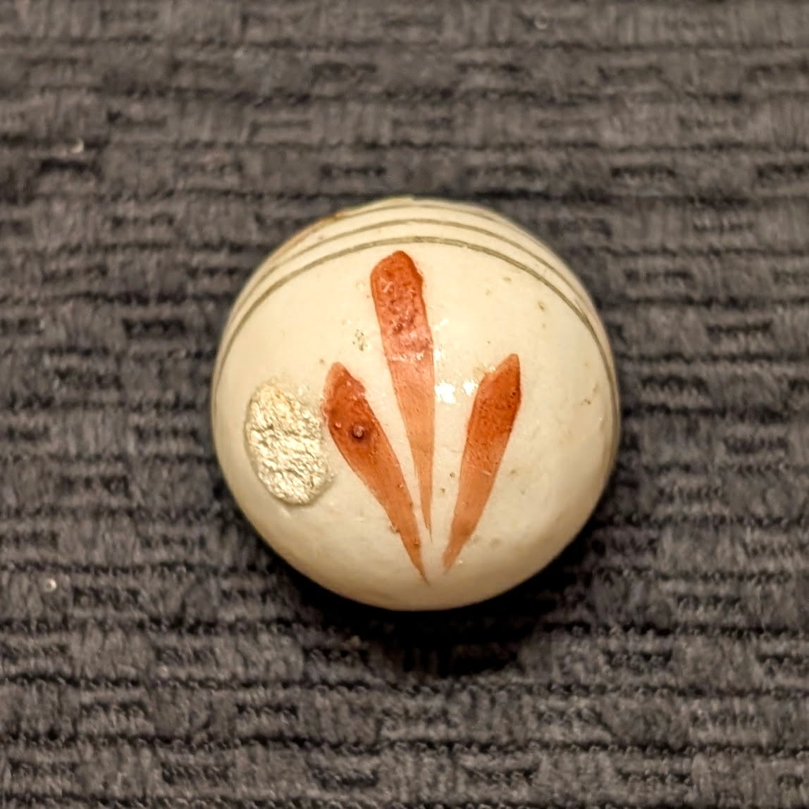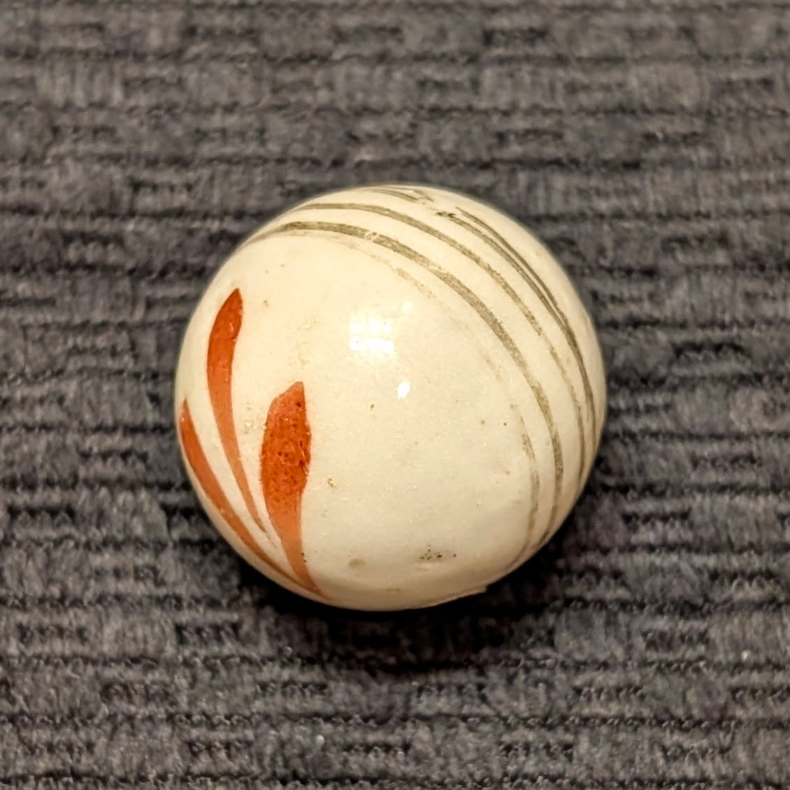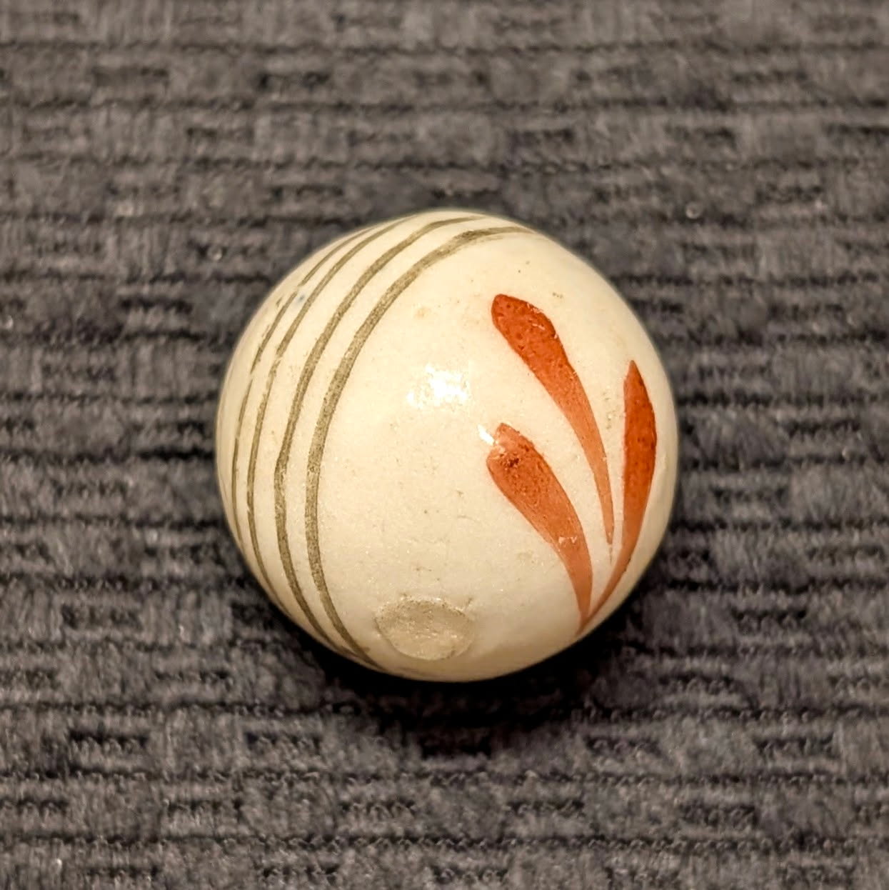 Huge 1″ Glazed China w/ Red Leaf Sprays & Black Equator Lines – Rarely Seen this Big!