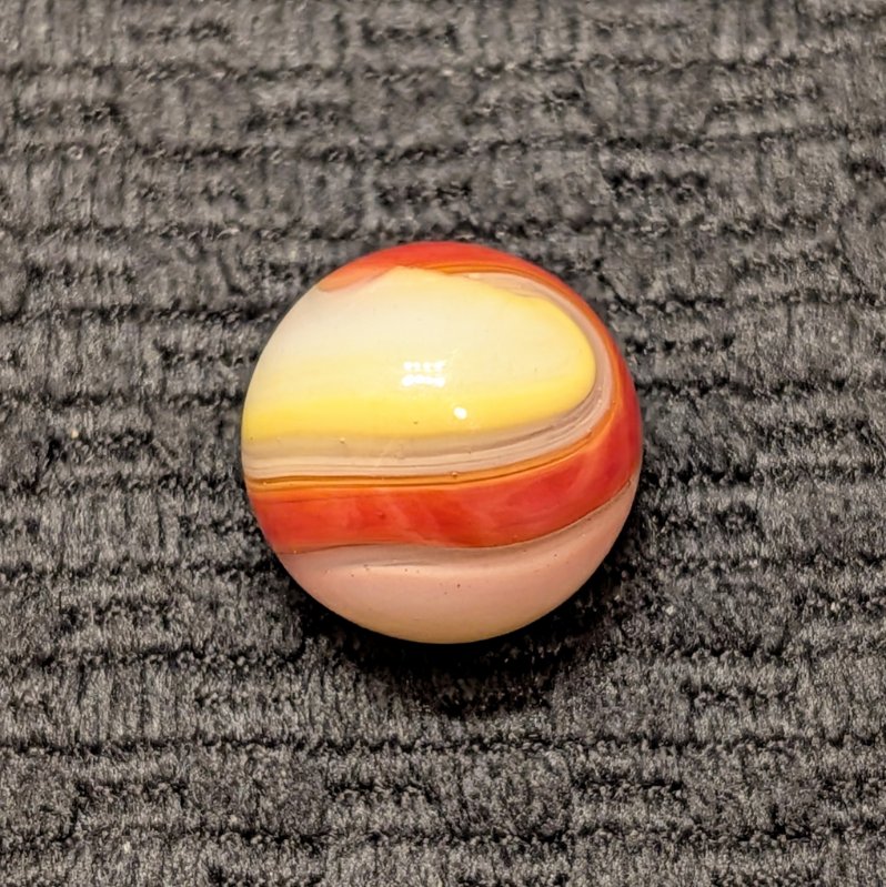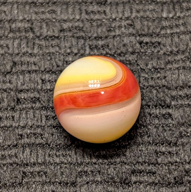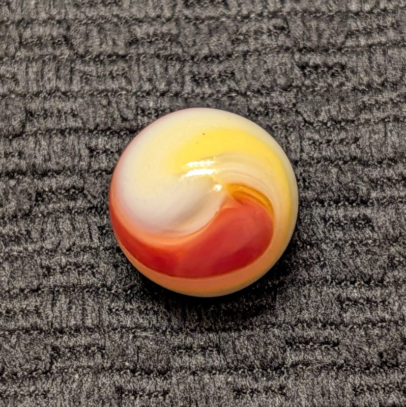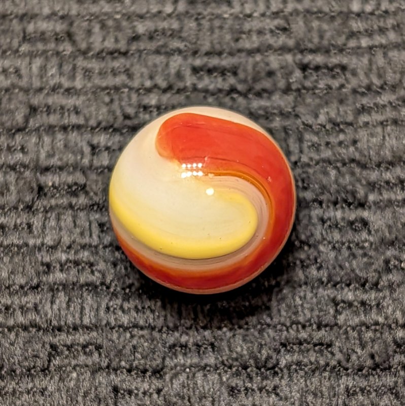 Multiple Color AKRO Corkscrew of Reddish Orange, Yellow, Milky White and Clear. Very Popeye-esque. Wet Mint.