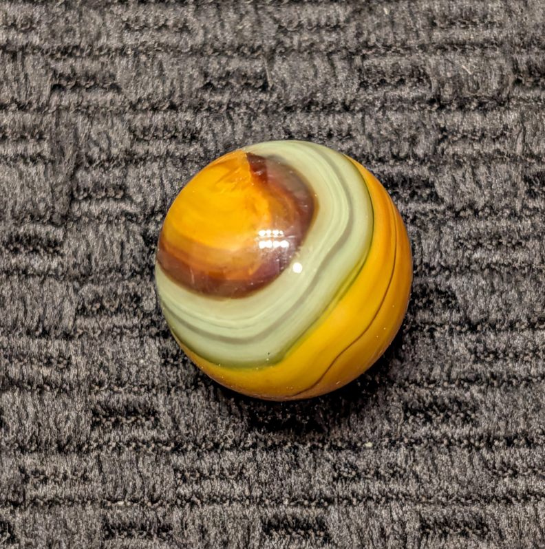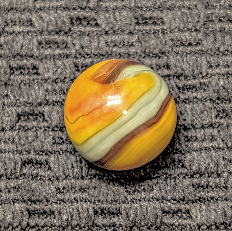 Multicolor Corkscrew of Green, Burgundy & Orange. A great color combo with only couple light hairline scratches only visible with magnification, hardly worth mentioning. Wet Mint- with no play damage at all.