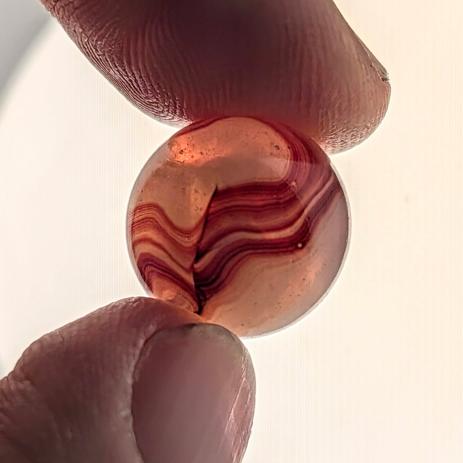 AKRO Oxblood Swirl with Strong Oxblood Coverage over a Translucent Base w/ Opalescent Qualities. Wet Mint.
