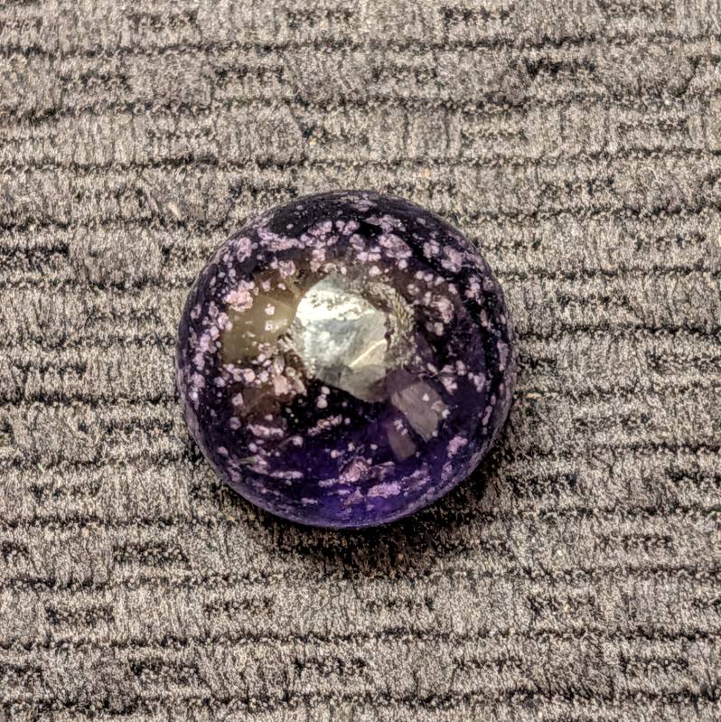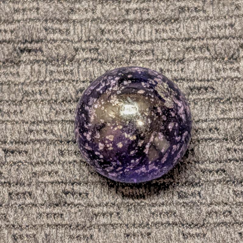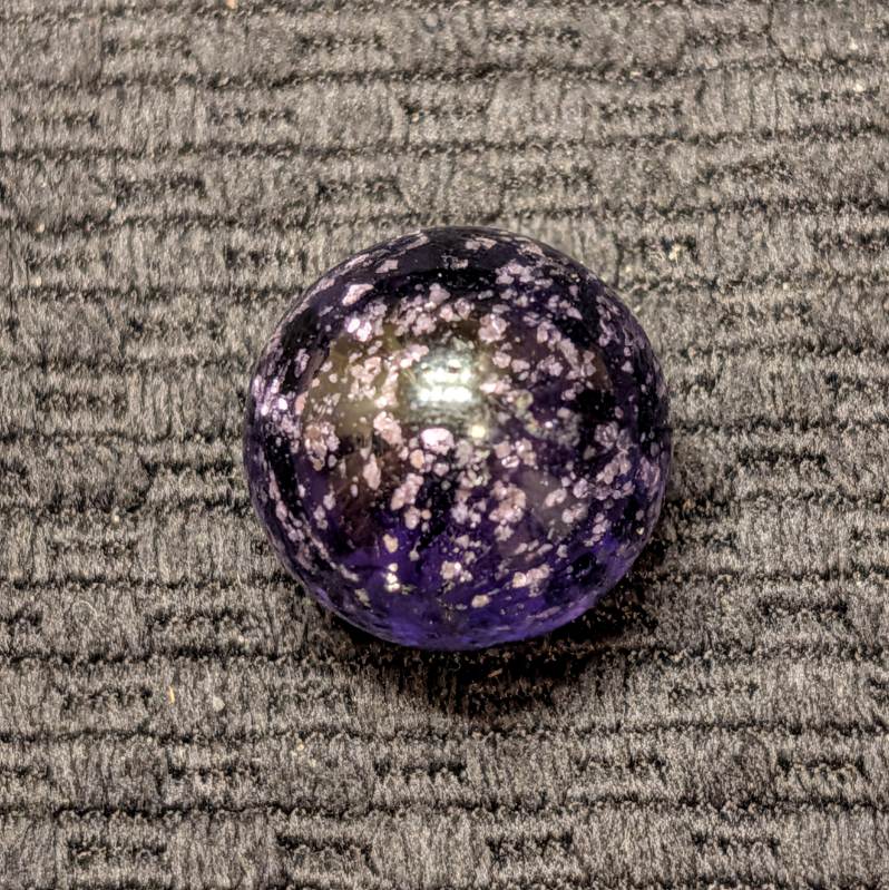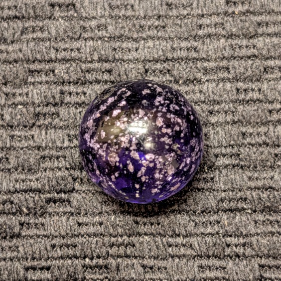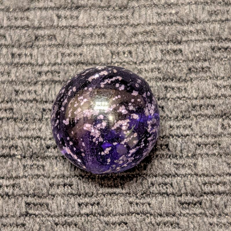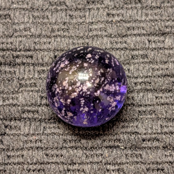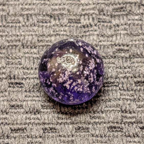 Outrageously Vivid Purple Glass Mica with strong coverage of mica throughout. I’ve only seen a few of these over the years, they are rarer than red glass micas in my opinion. Faceted pontil. Wet mint with an as made hot spot touch mark. From my personal collection.