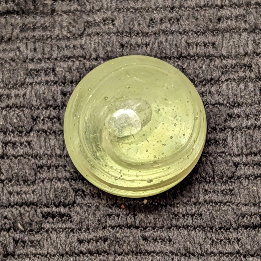 Rare 13/16″ Grenier w/ Eggyolk & White Spiral that spins several times, and an inner tornado ghost core. Faceted Pontil. This early German hand-gathered glass marble type was pioneered by Silas Grenier, circa 1840-1860.