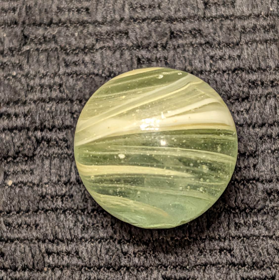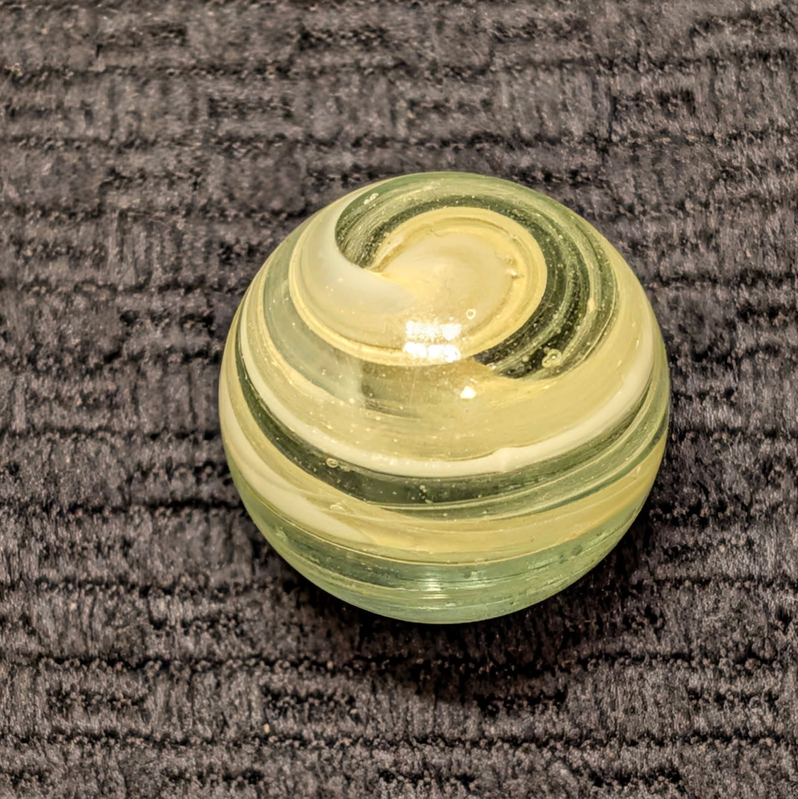 Rare 13/16″ Hand-Gathered Grenier w/ Eggyolk & White Spinning Spiral & Tornado Ghost Core