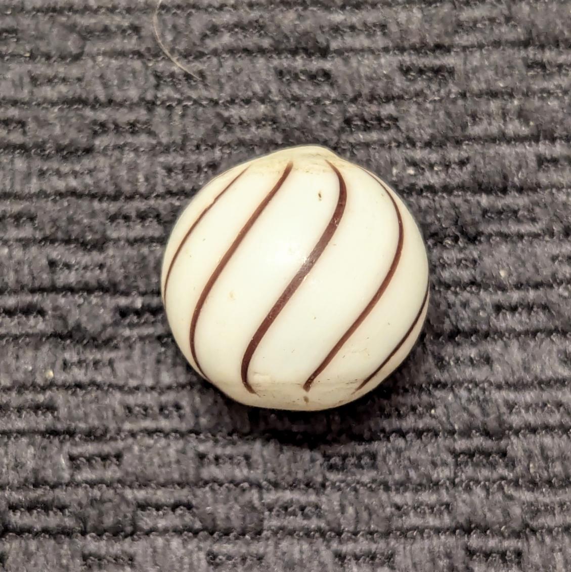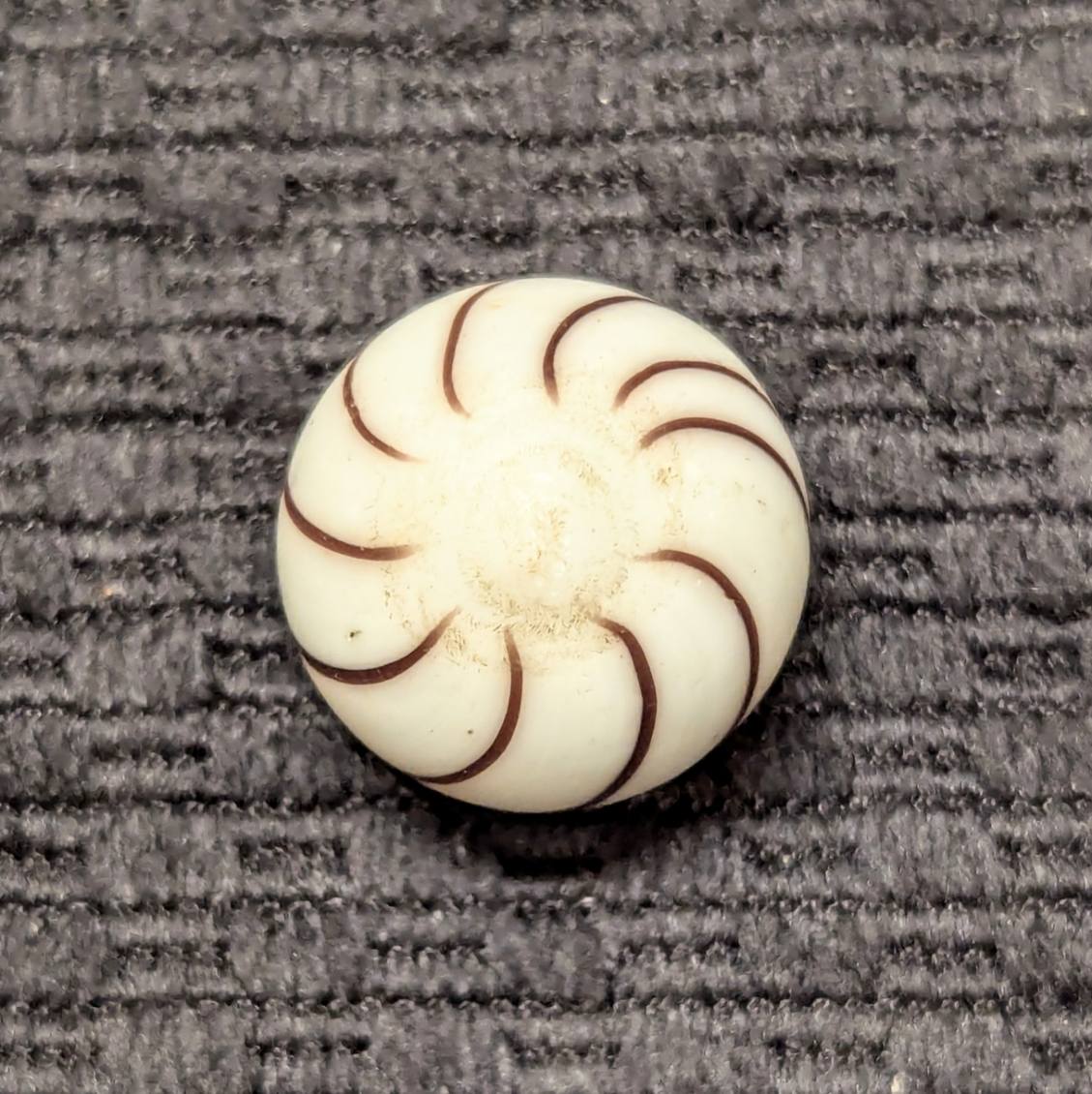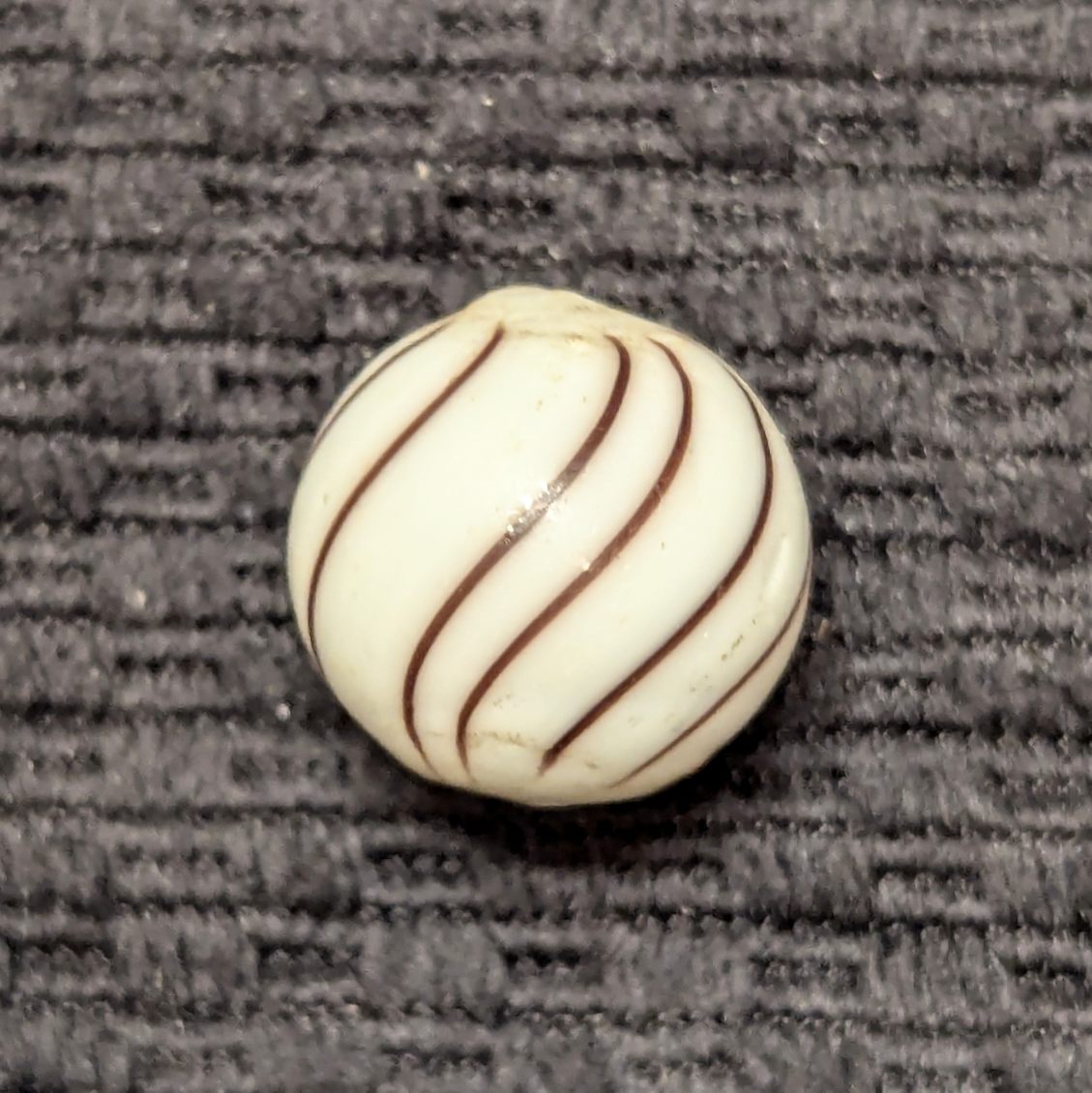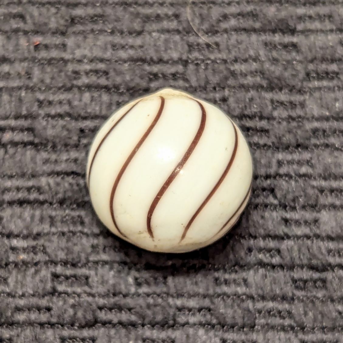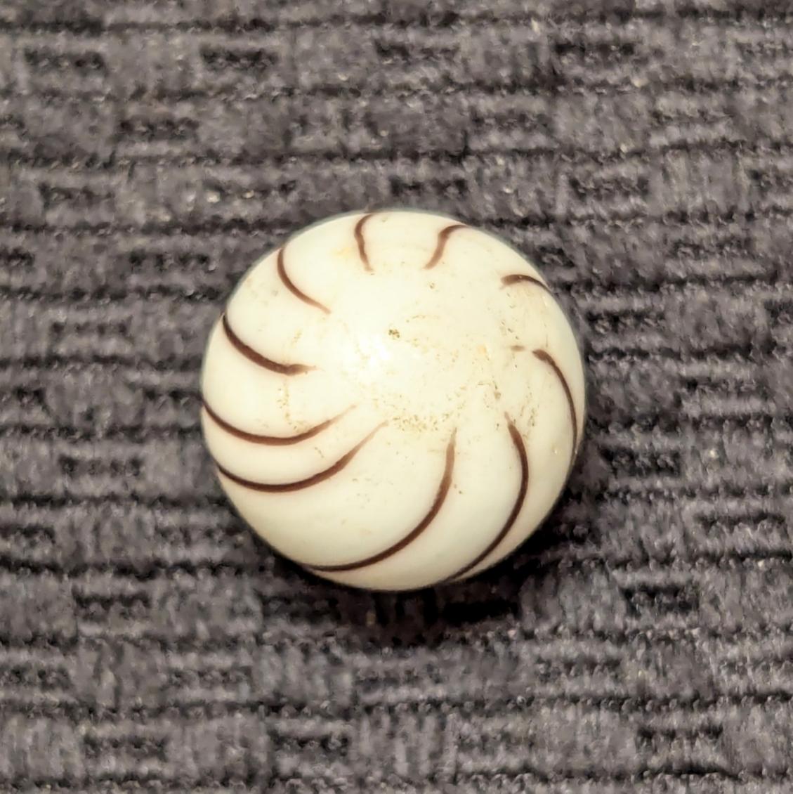 Rare 25/32″ Shooter Clambroth with Brown Lines. Very good line symmetry on this 10-line clambroth. Exceptional quality and outstanding size on this very difficult to find color variety. Mint. From my personal collection.