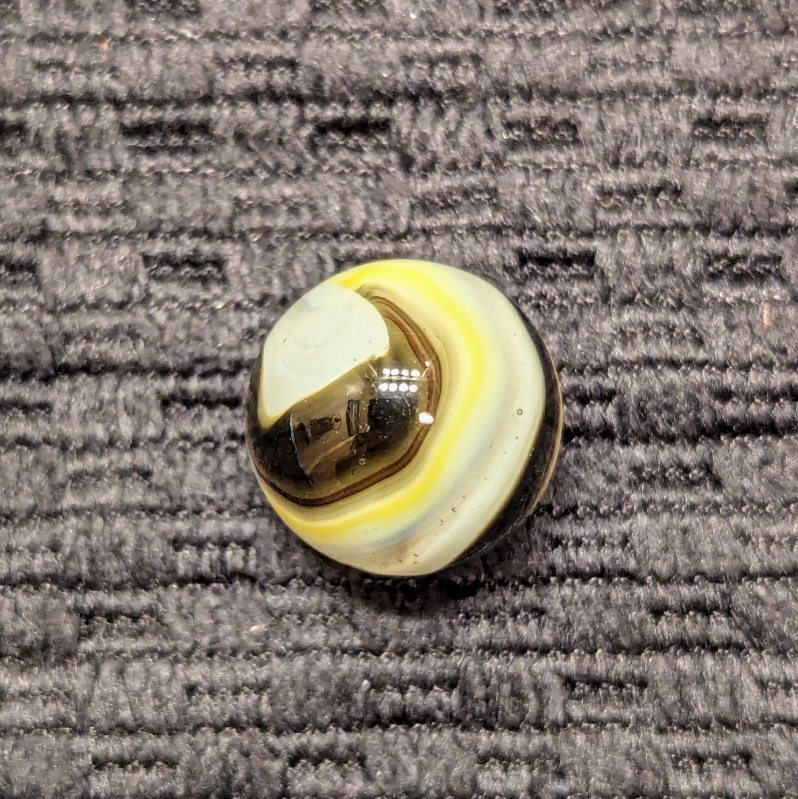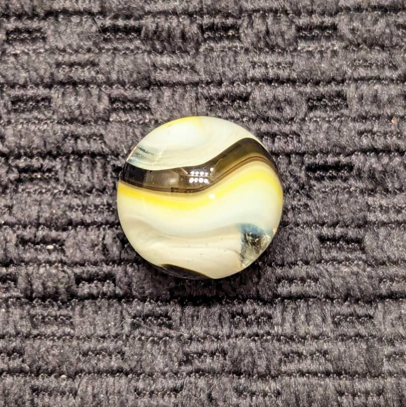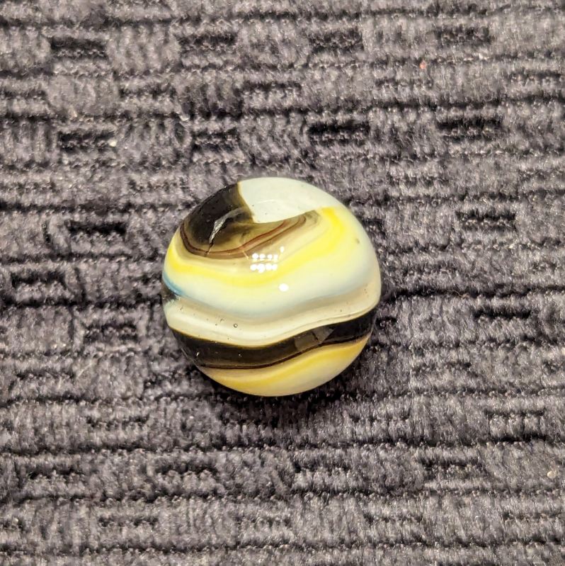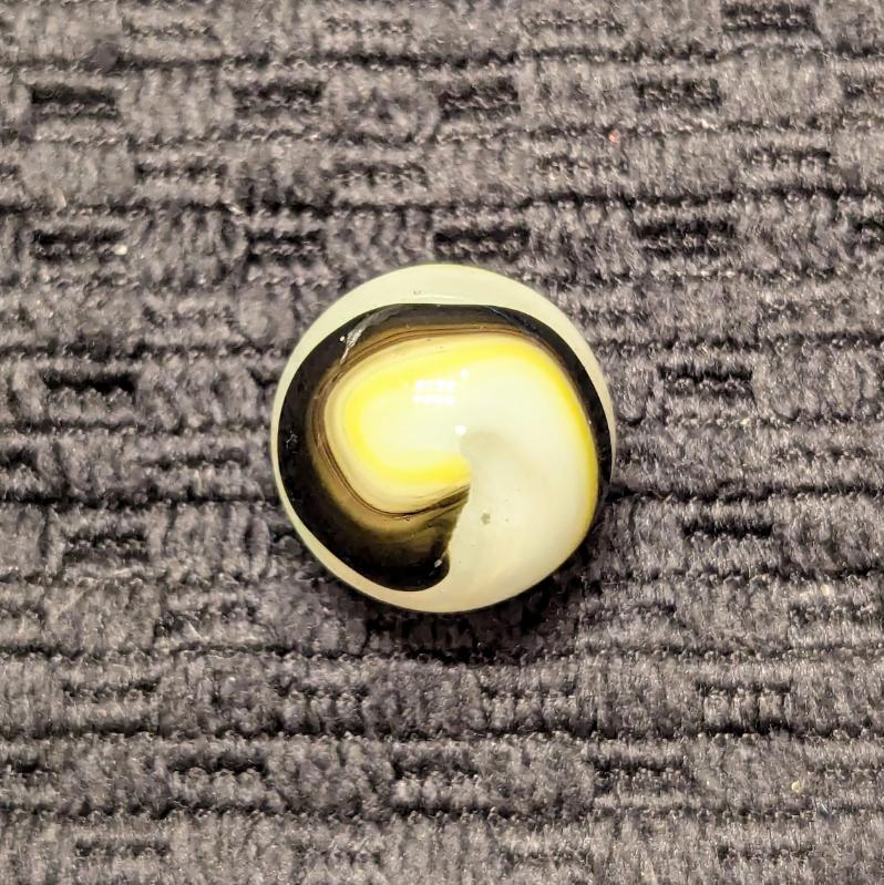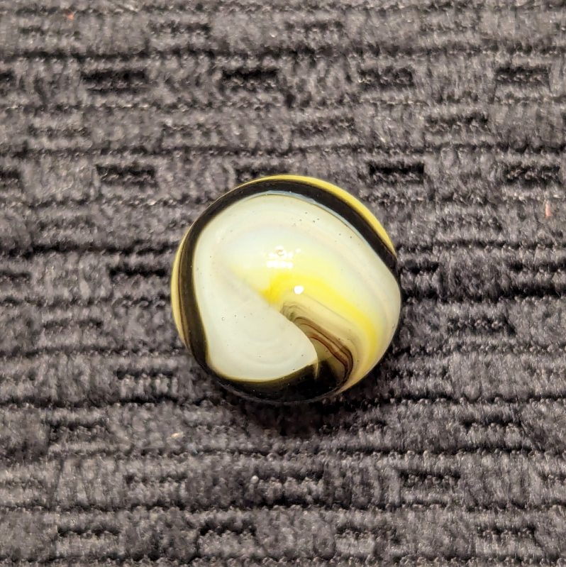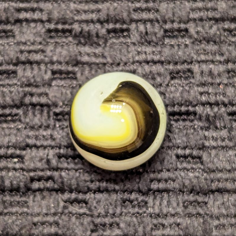 Black, Oxblood & Yellow Popeye Corkscrew. Typically not a lot of stringy white on these. Wet mint and original surface.