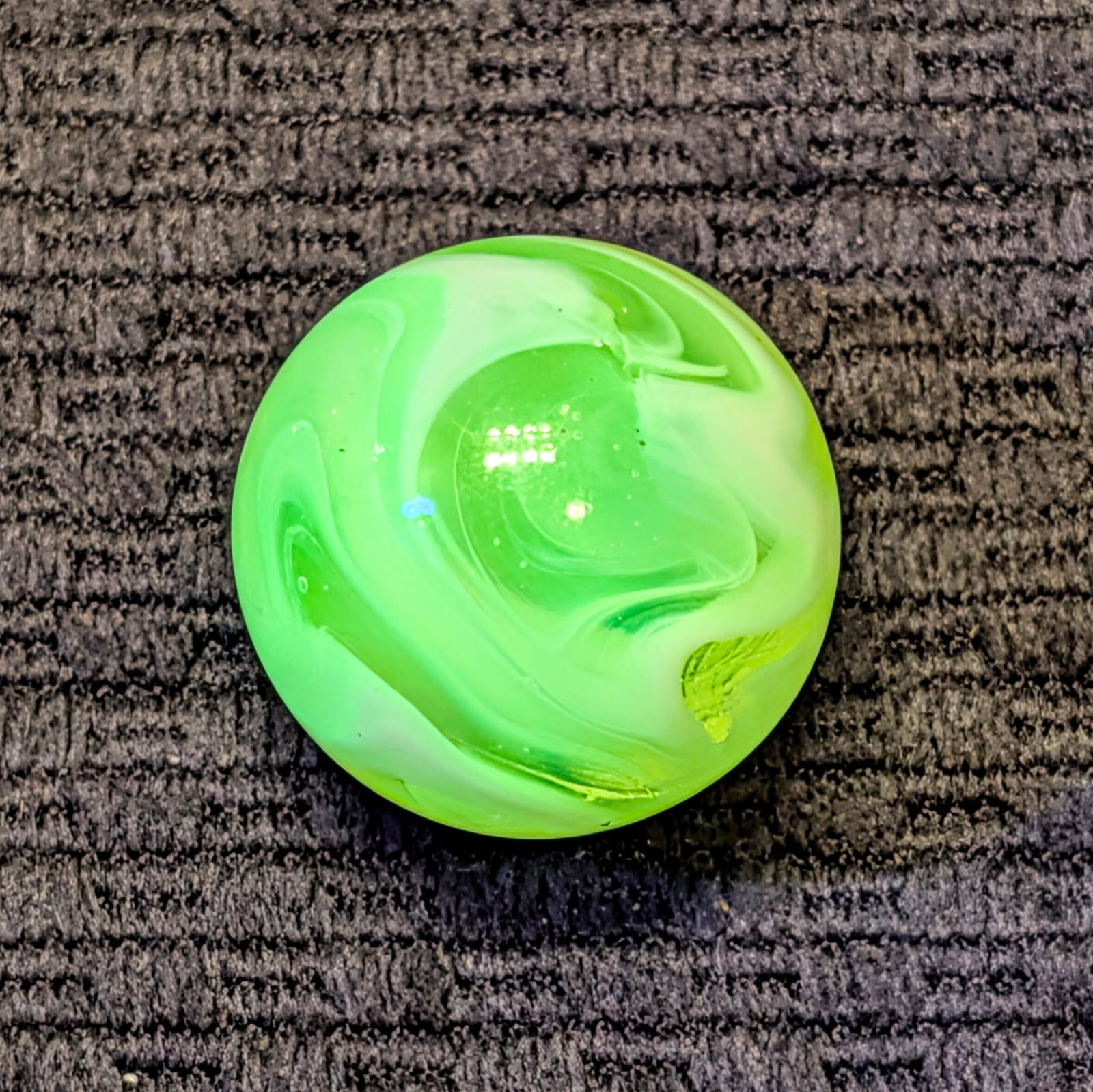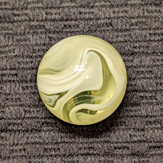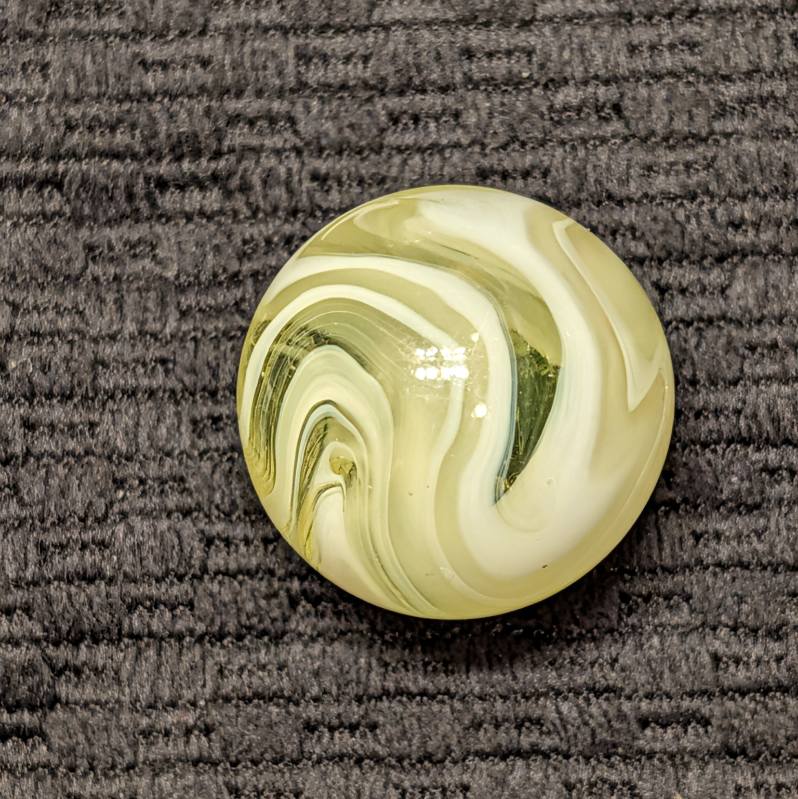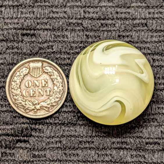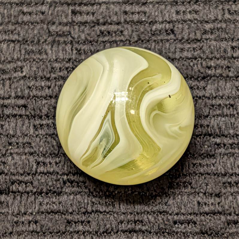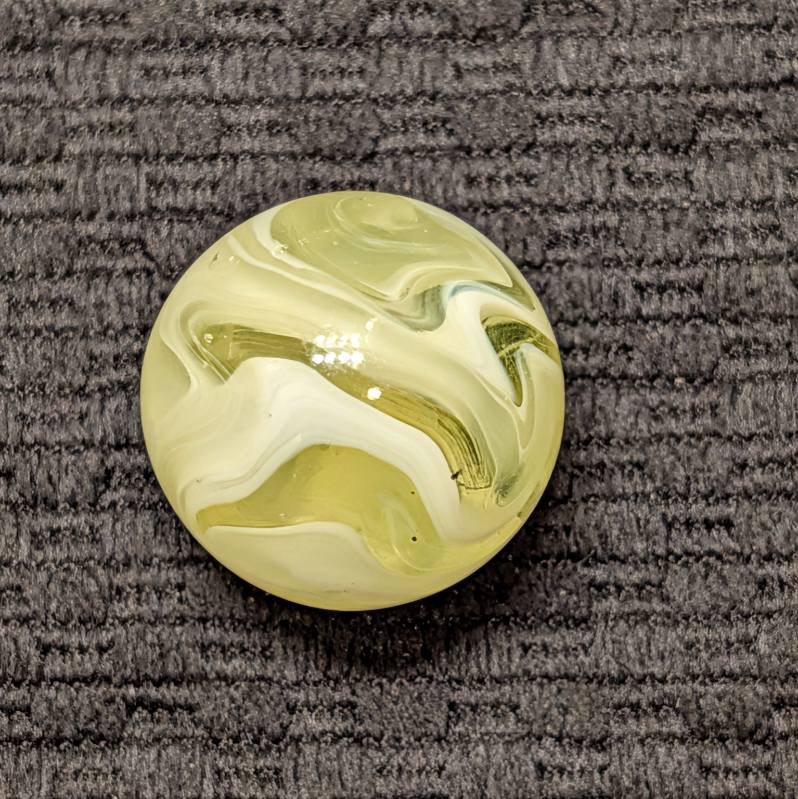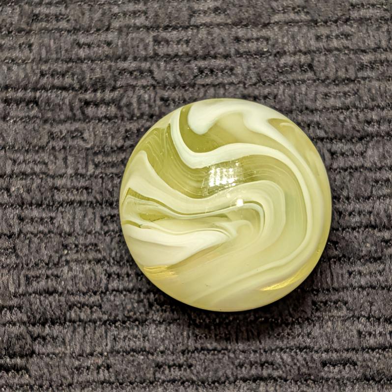 Rare Full 1″ UV Yellow AKRO Slag with Excellent Pattern and Remarkable Eye Appeal from Every Angle and only a couple faint sparkles. Very Seldom Seen at the full 1″ Size and Killer Design! I don’t think I’ve seen one bigger, have you?
