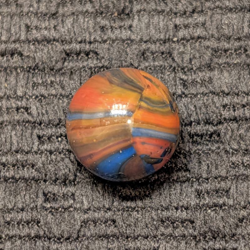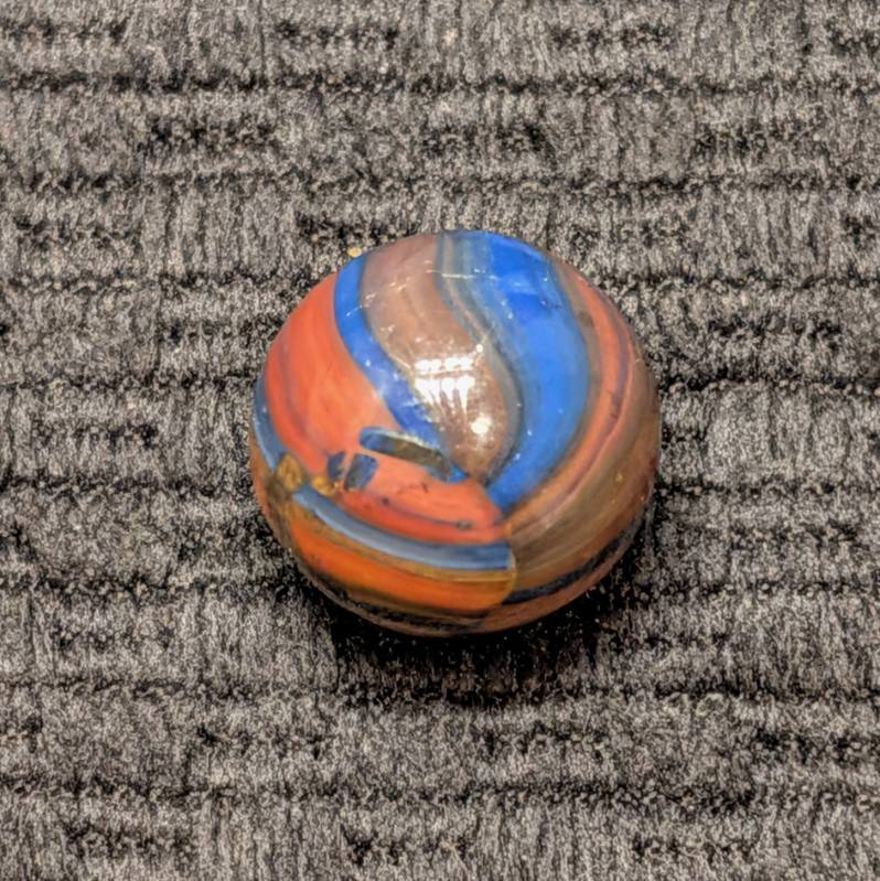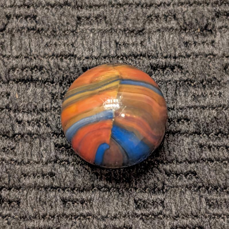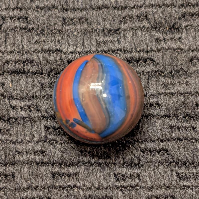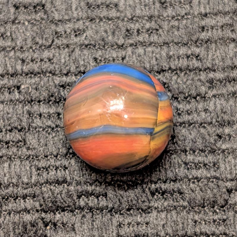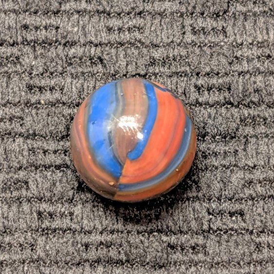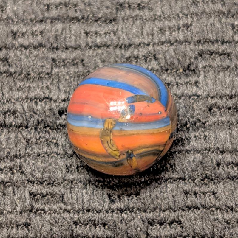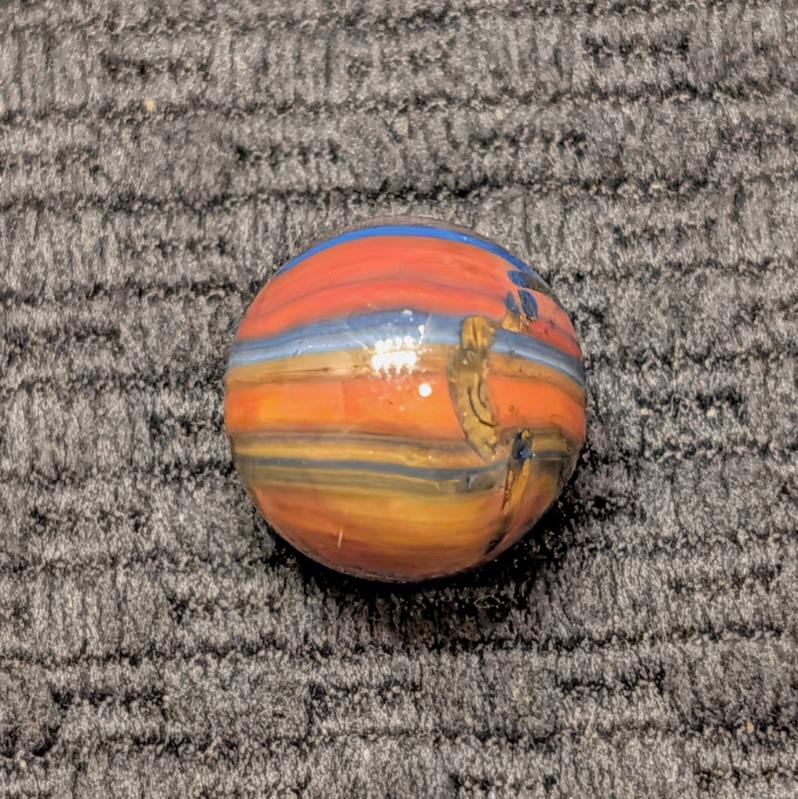 Marble King Fine-Line Spiderman w/ Oxblood Patch at the Pole. A Factory Error of Linear Broken Drizzle of Overlaping Colors is a Special Touch (pun intended)! Wet Mint.