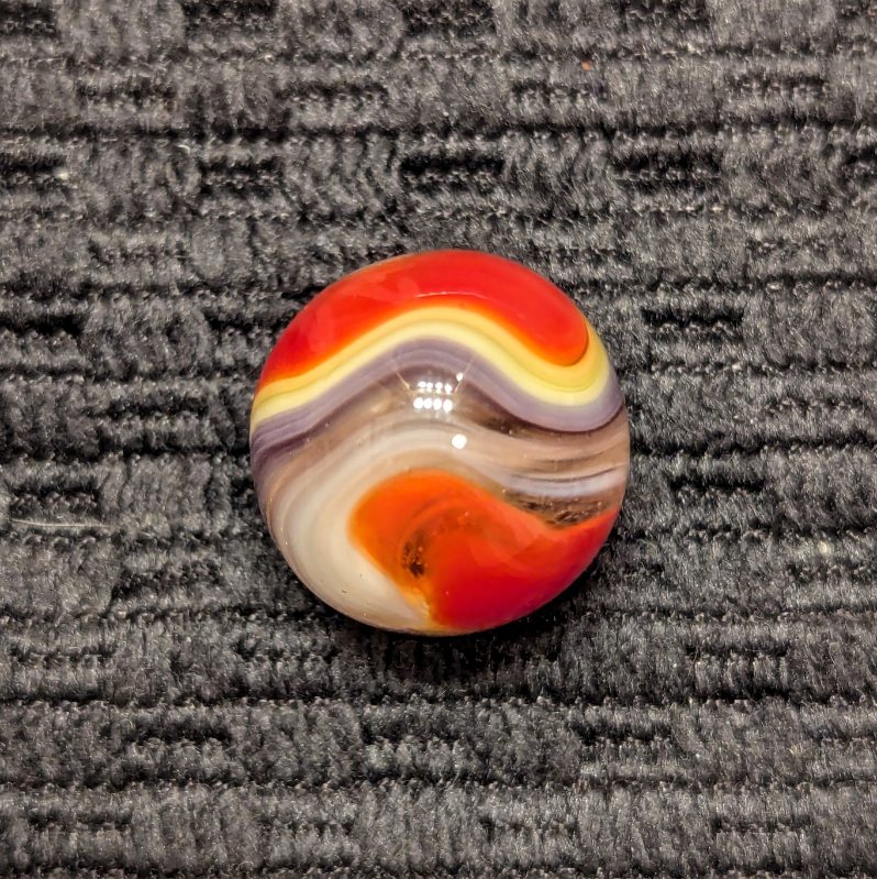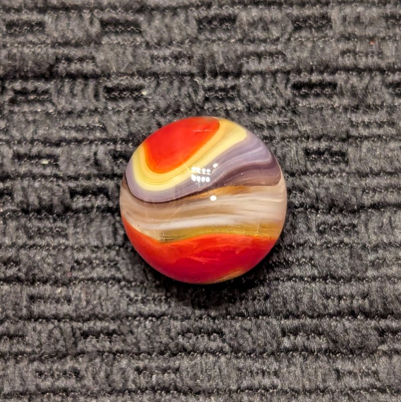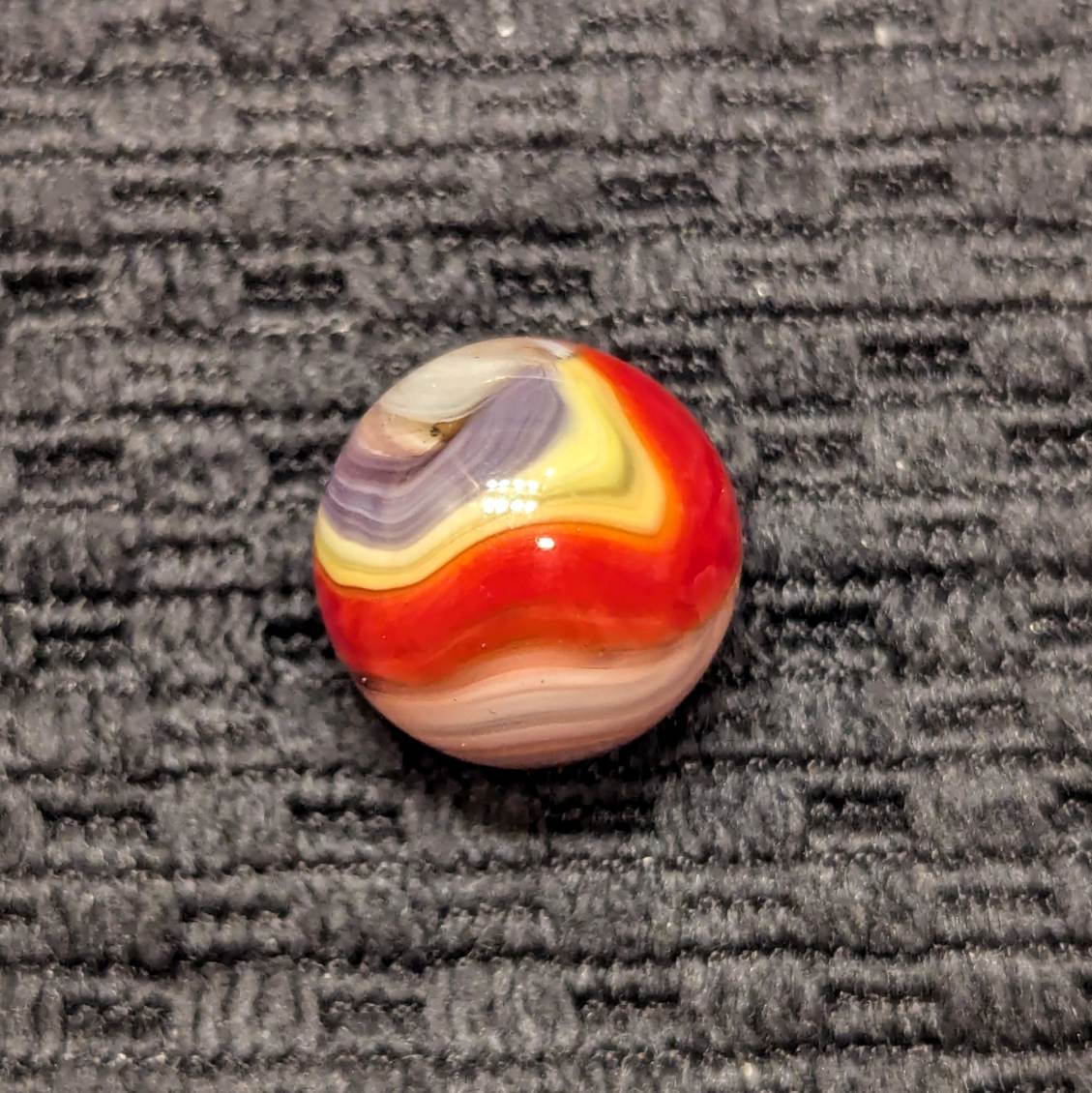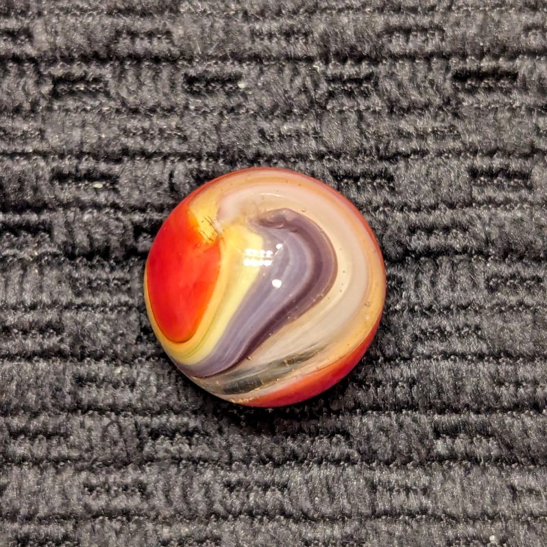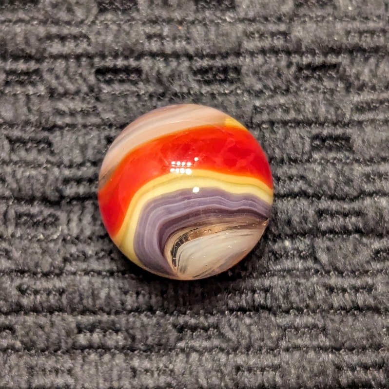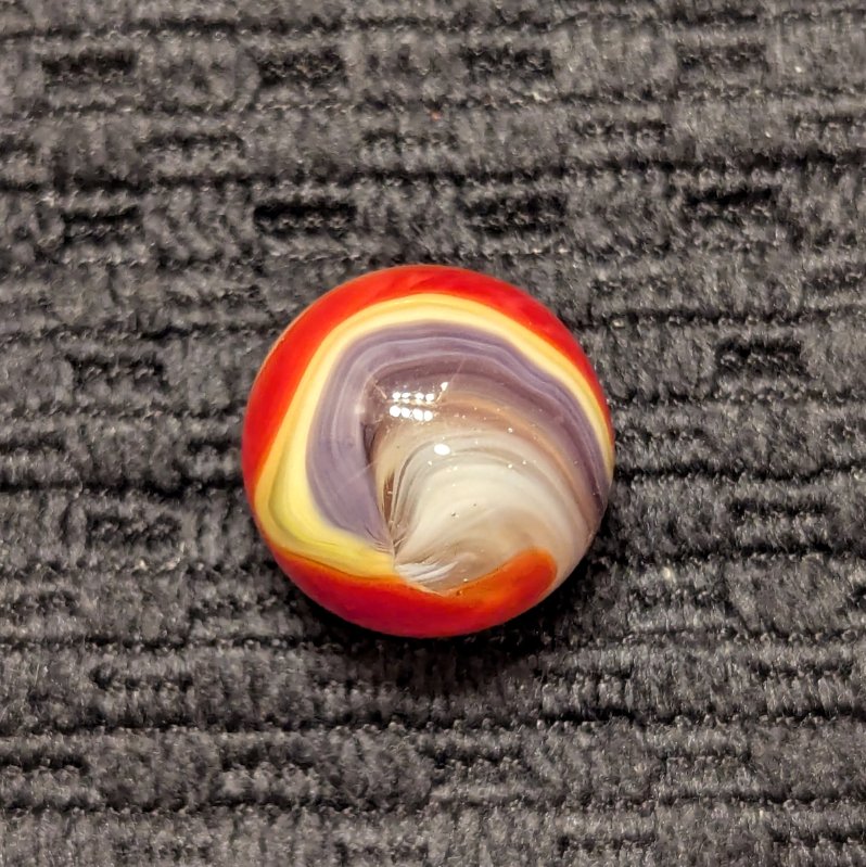 Rare Purple, Yellow & Red Hybrid Popeye with distinctive purple and lavender bands, good equal distribution of color and a lot of clear with stringy white. Wet mint and original surface. From my private collection.