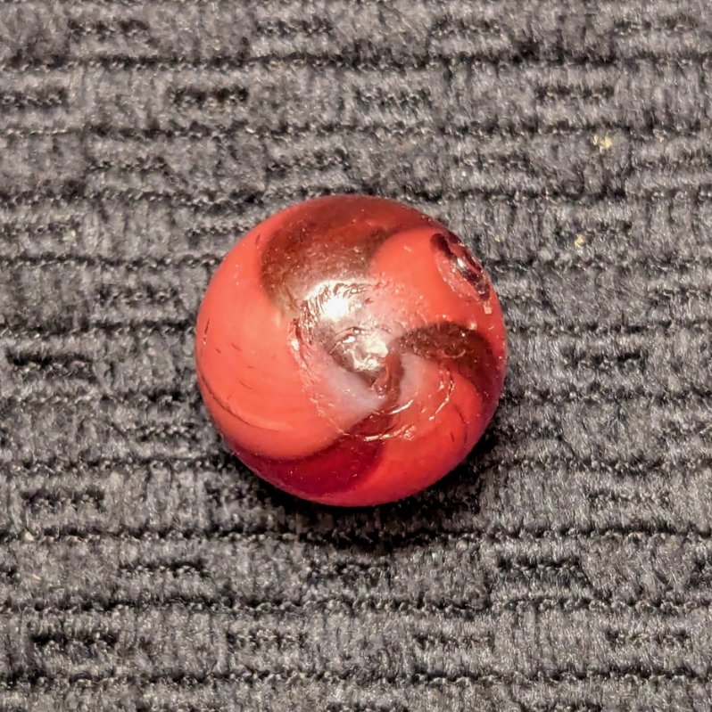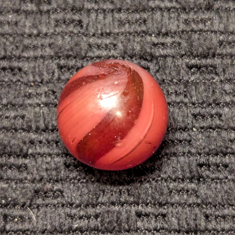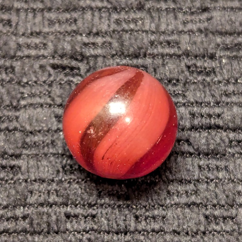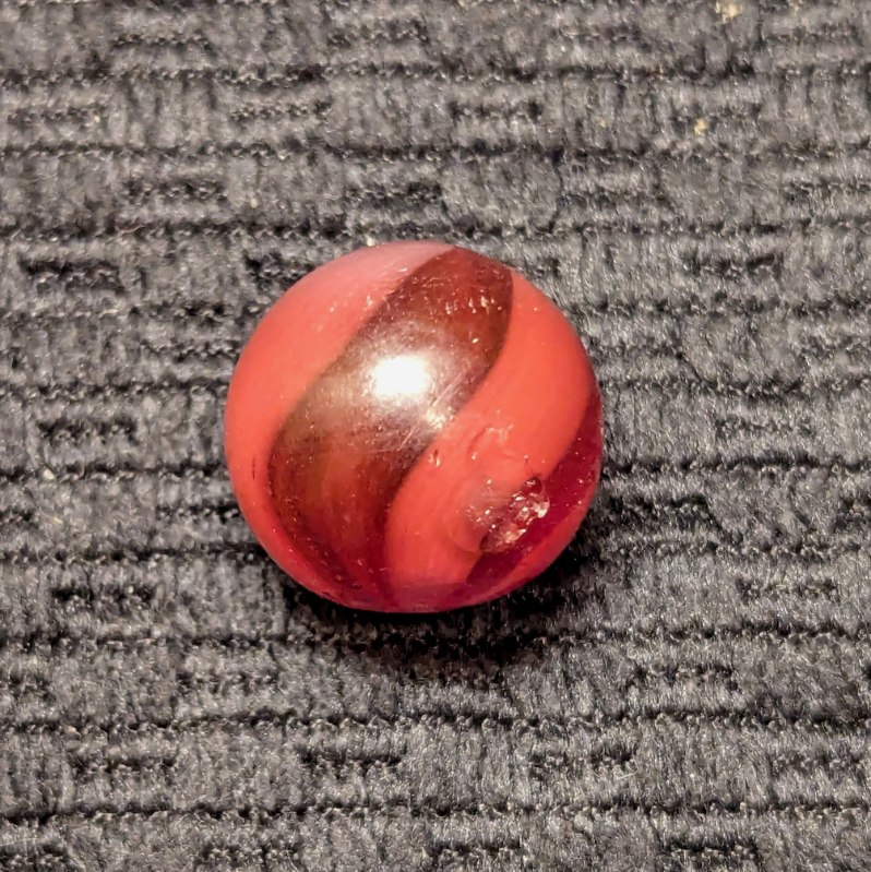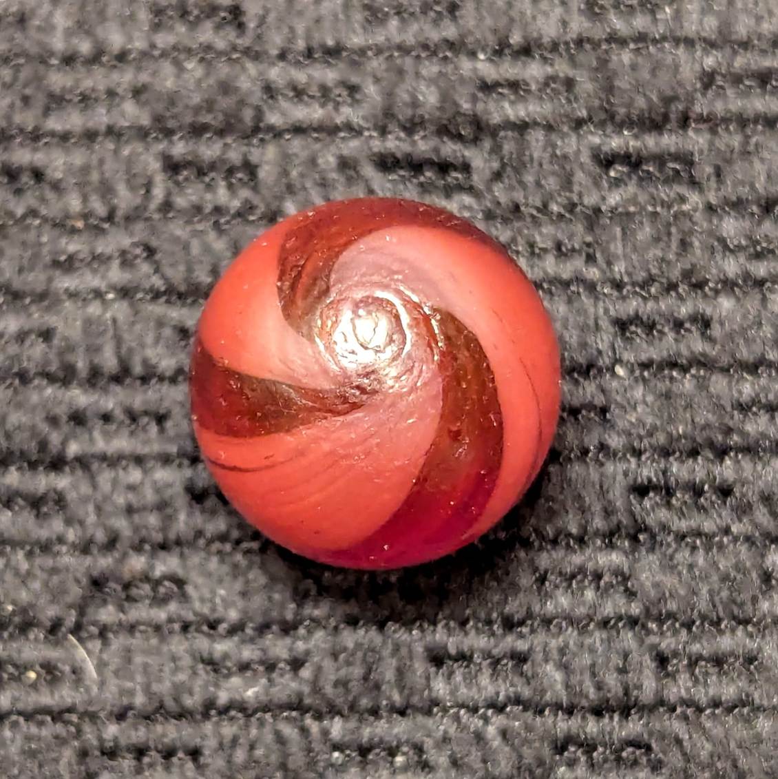 Rare RED GLASS Naked Divided Core Swirl w/ 3-Wide Razor Ribbons & Fantastic Symmetry! Incredibly hard to find these in any condition. Real GOLD was used to create the red glass, which was expensive to produce so very few exist. Also the glass was brittle, causing this soft-glass type to be typically found with lots of damage, so of the few that were made most didn’t survive. Original surface in NM condition. This one has a couple hits but displays nicely. Early faceted pontil dates this rare gem to before 1880.
