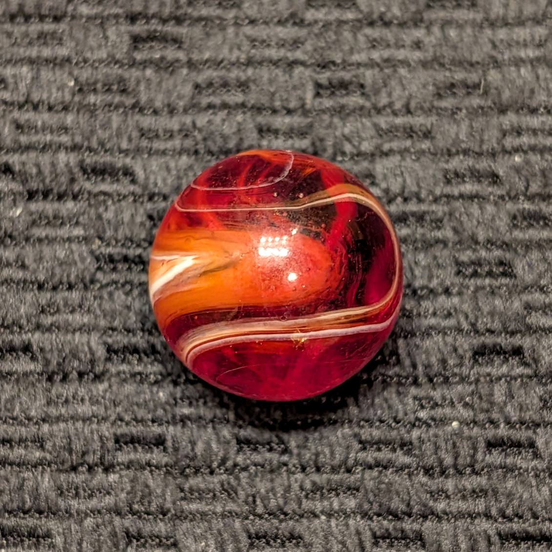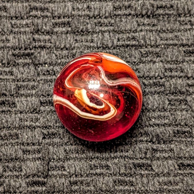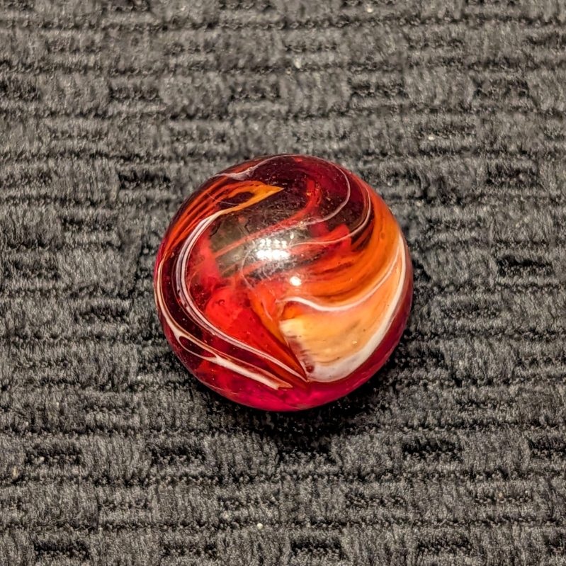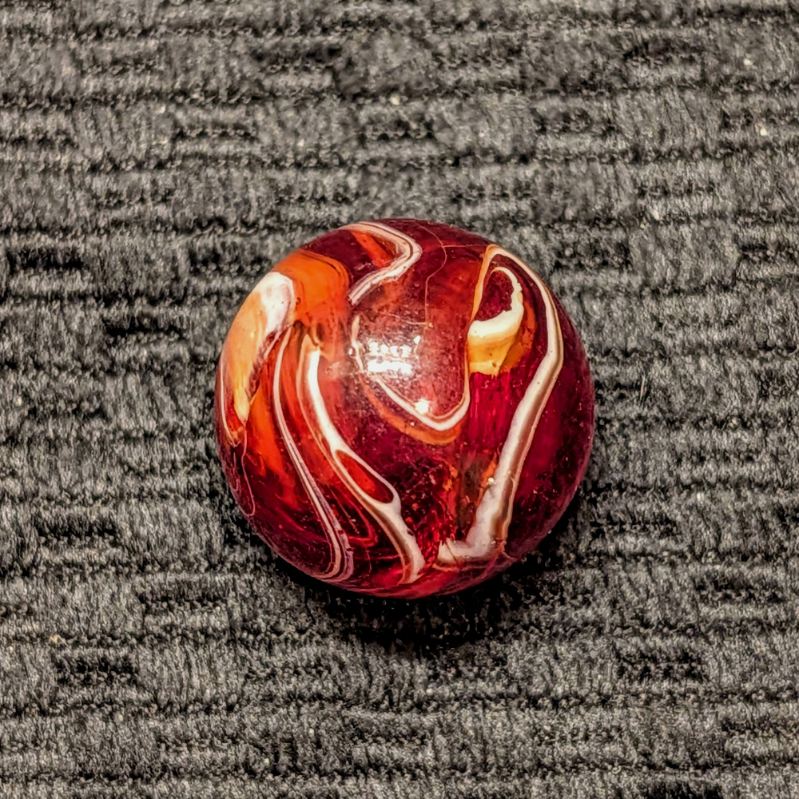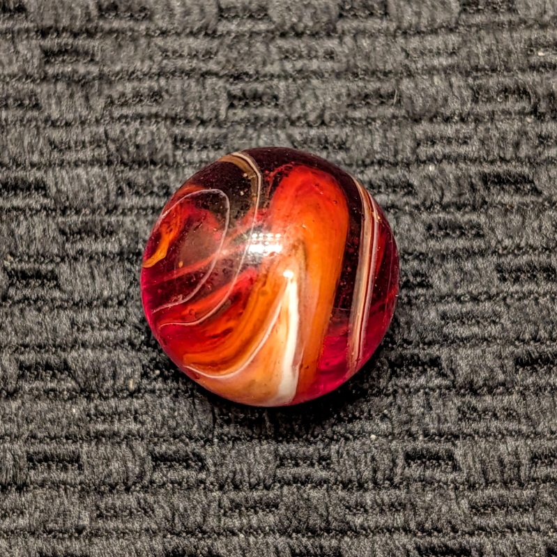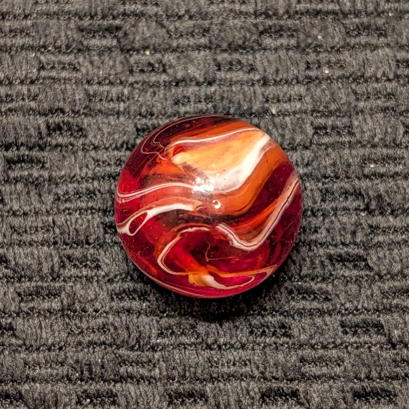 Shooter Size 3/4″+ Hand-Gathered CAC Bright Red, Orange Slag w/ Cut Line.
