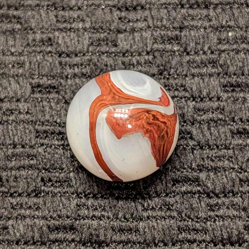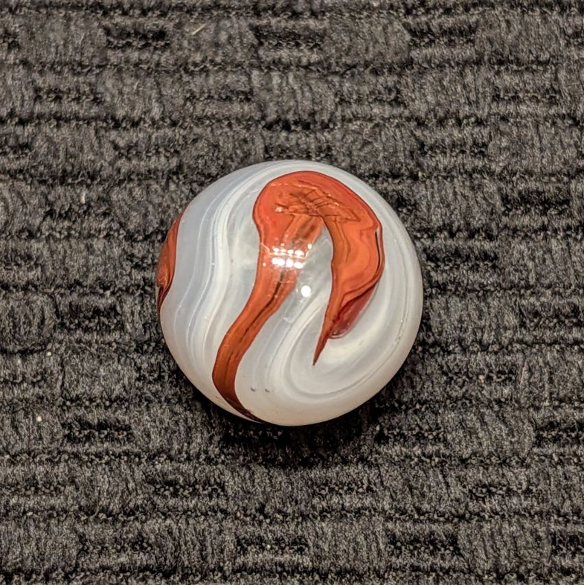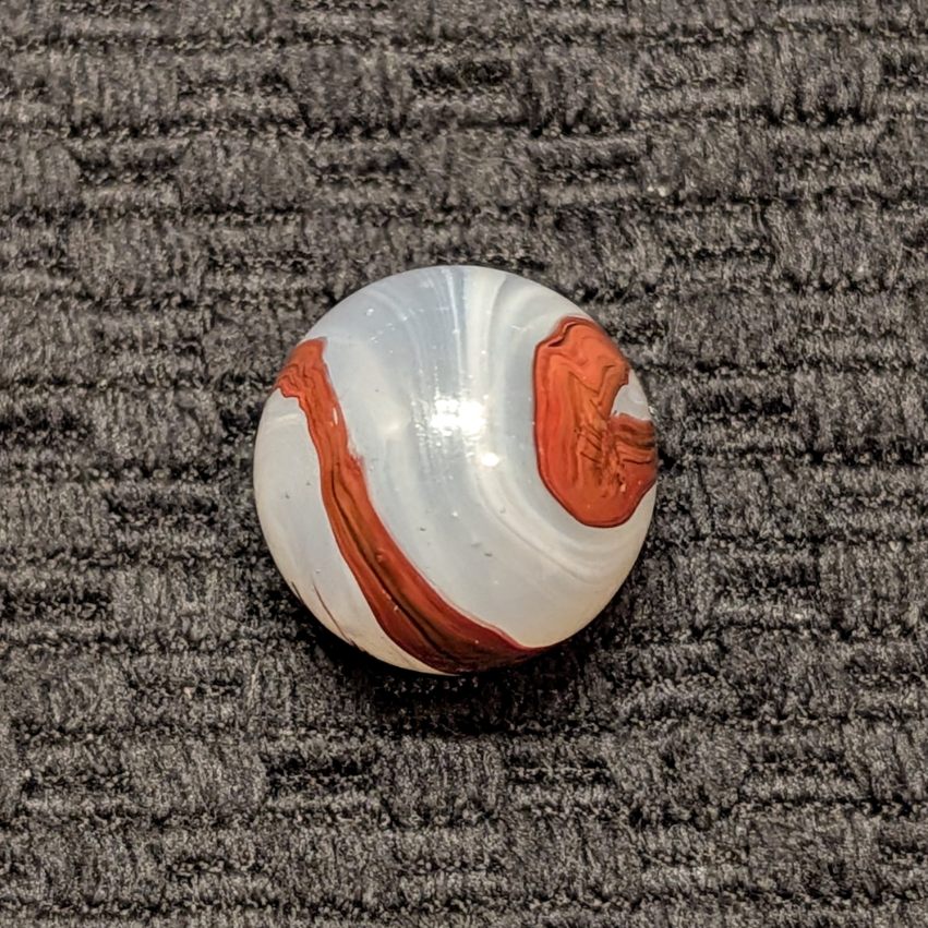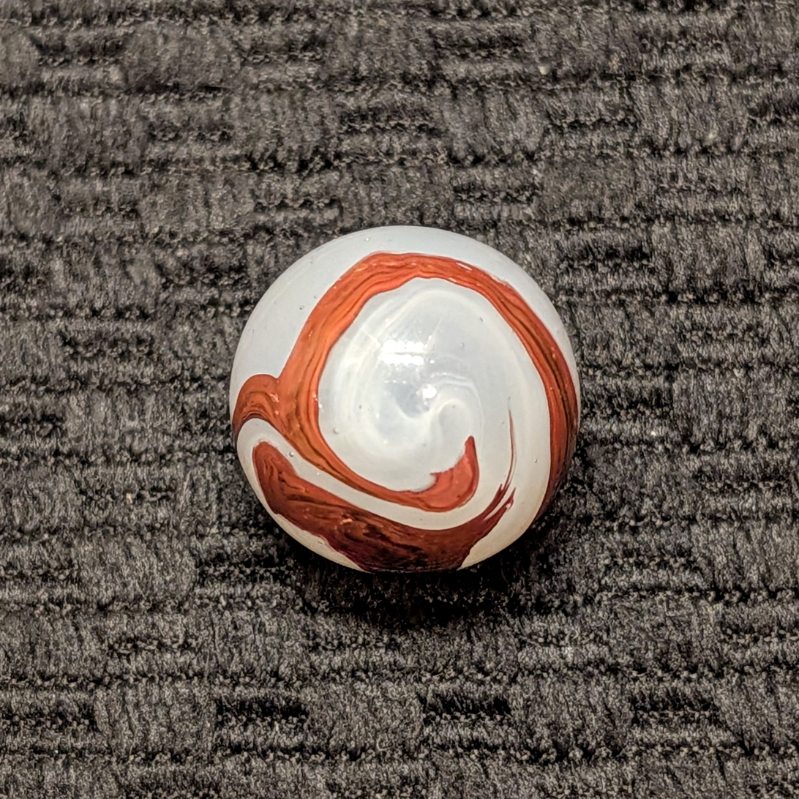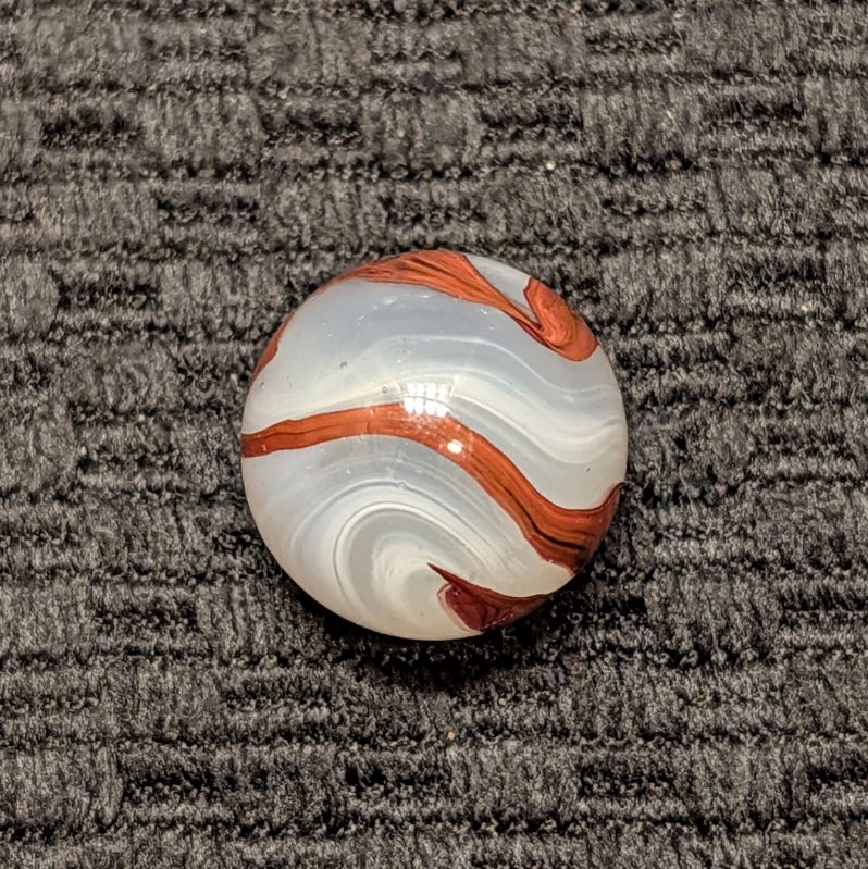 21/32″ Nice Silver Onyx Oxblood with strong coverage of oxblood & fantastic lazy corkscrew pattern. Wet Mint.
