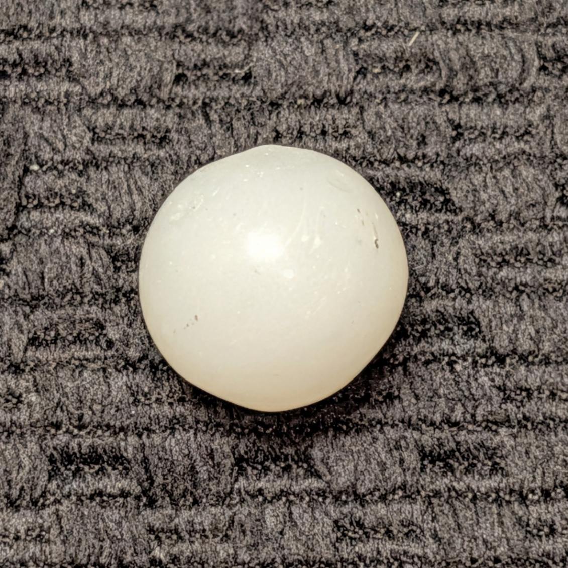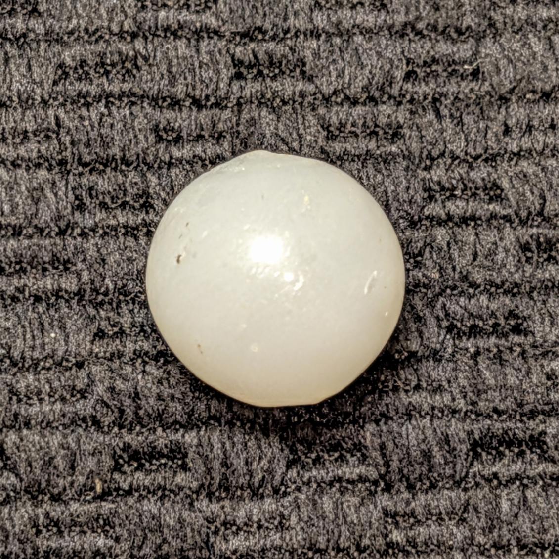 White Semi-Translucent “Melon Ball” Swirl. Basically the Same Base as a Banded Opaque but without the Bands. Mint.