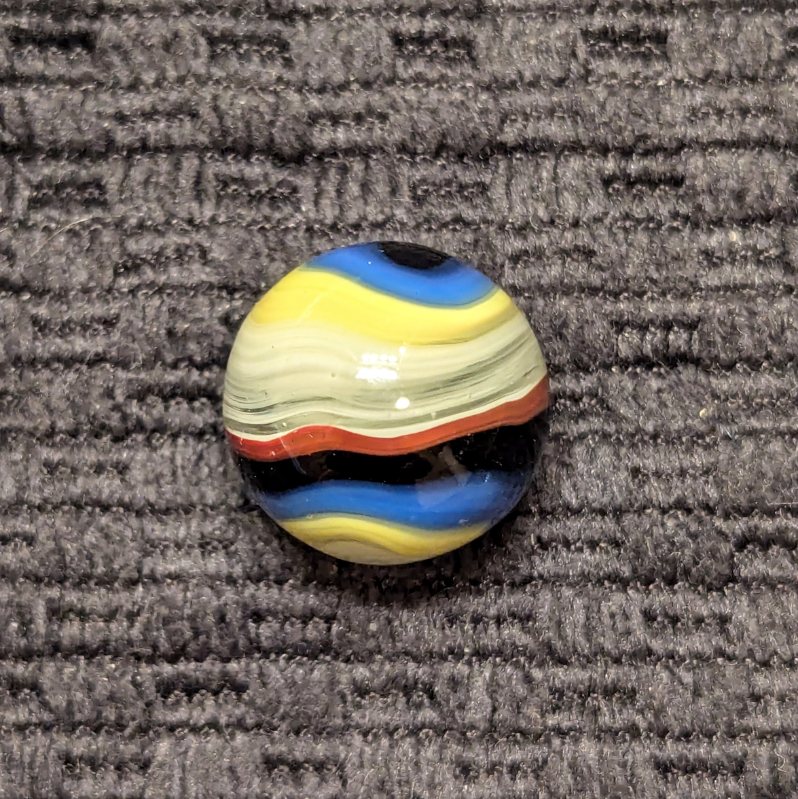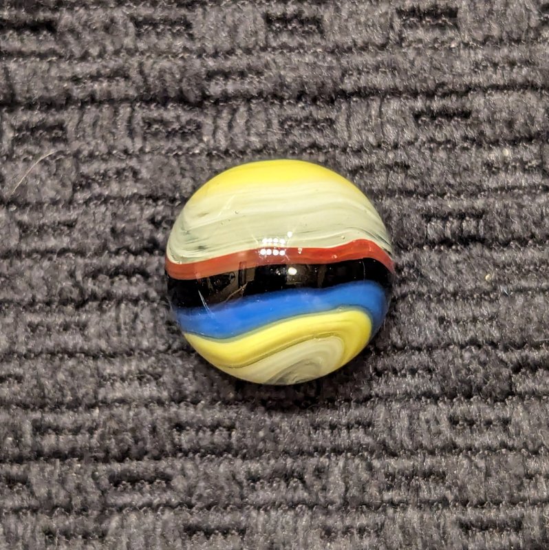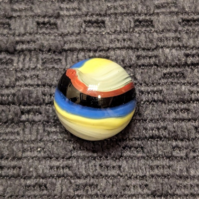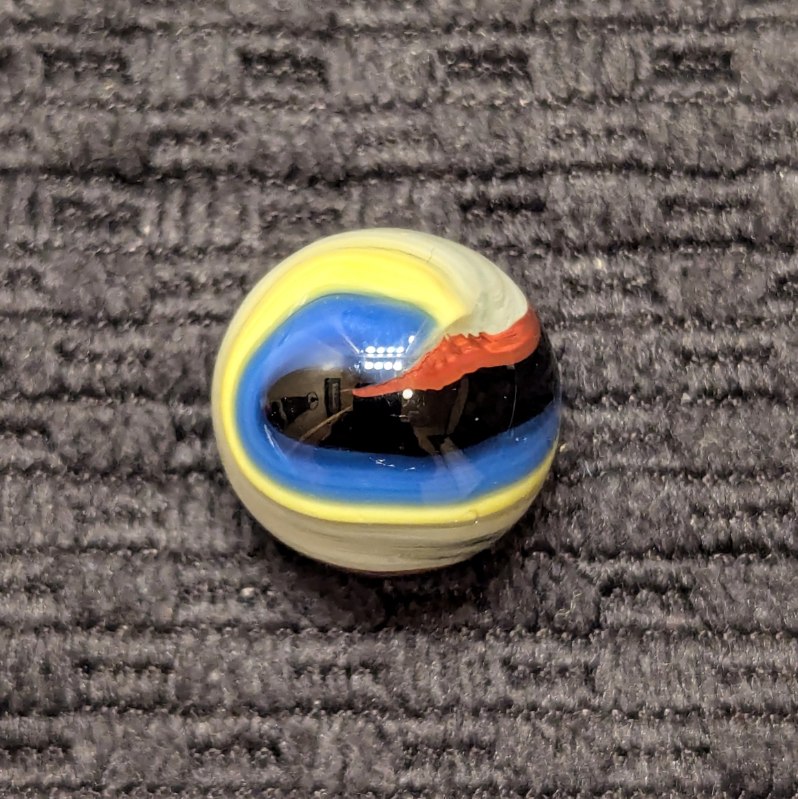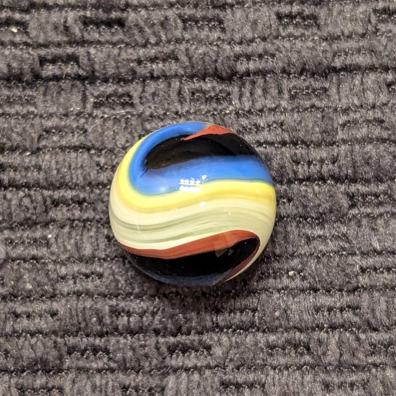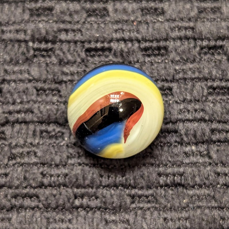 Ultra Rare Hybrid Popeye with Nearly Even Distribution of Yellow, Blue, Black & Oxblood! Literally unheard of color combo with only a few in existence. This gem is wet mint and original surface. From my personal collection.