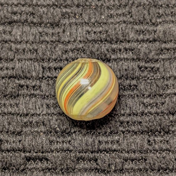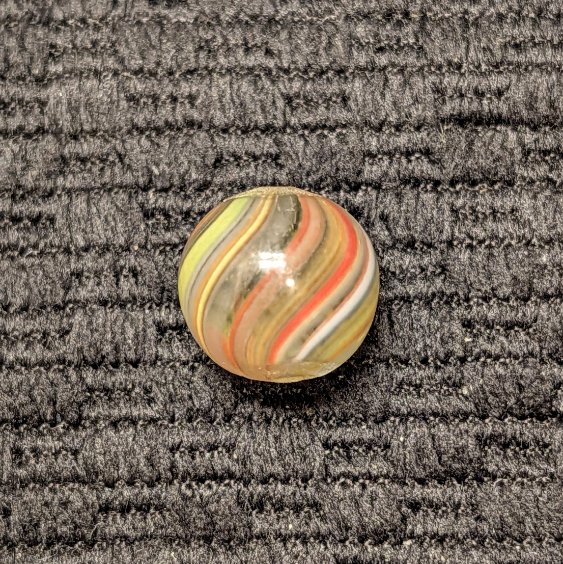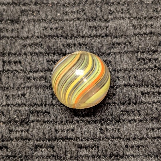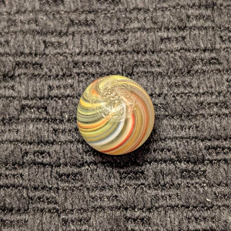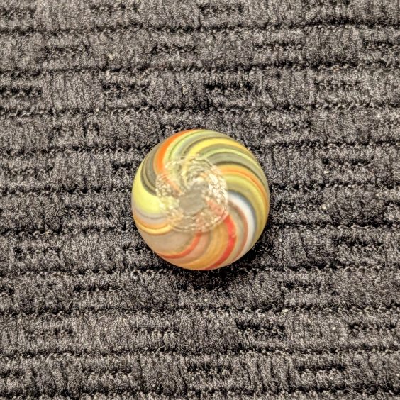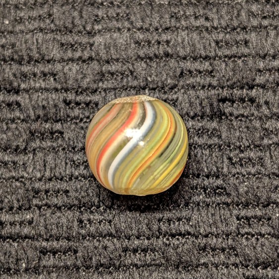 Under 1/2″ Peewee Joseph’s Coat Swirl w/ Translucent Multicolor Pastel Striped Pattern. Very very attractive! WET MINT. Coin not included.