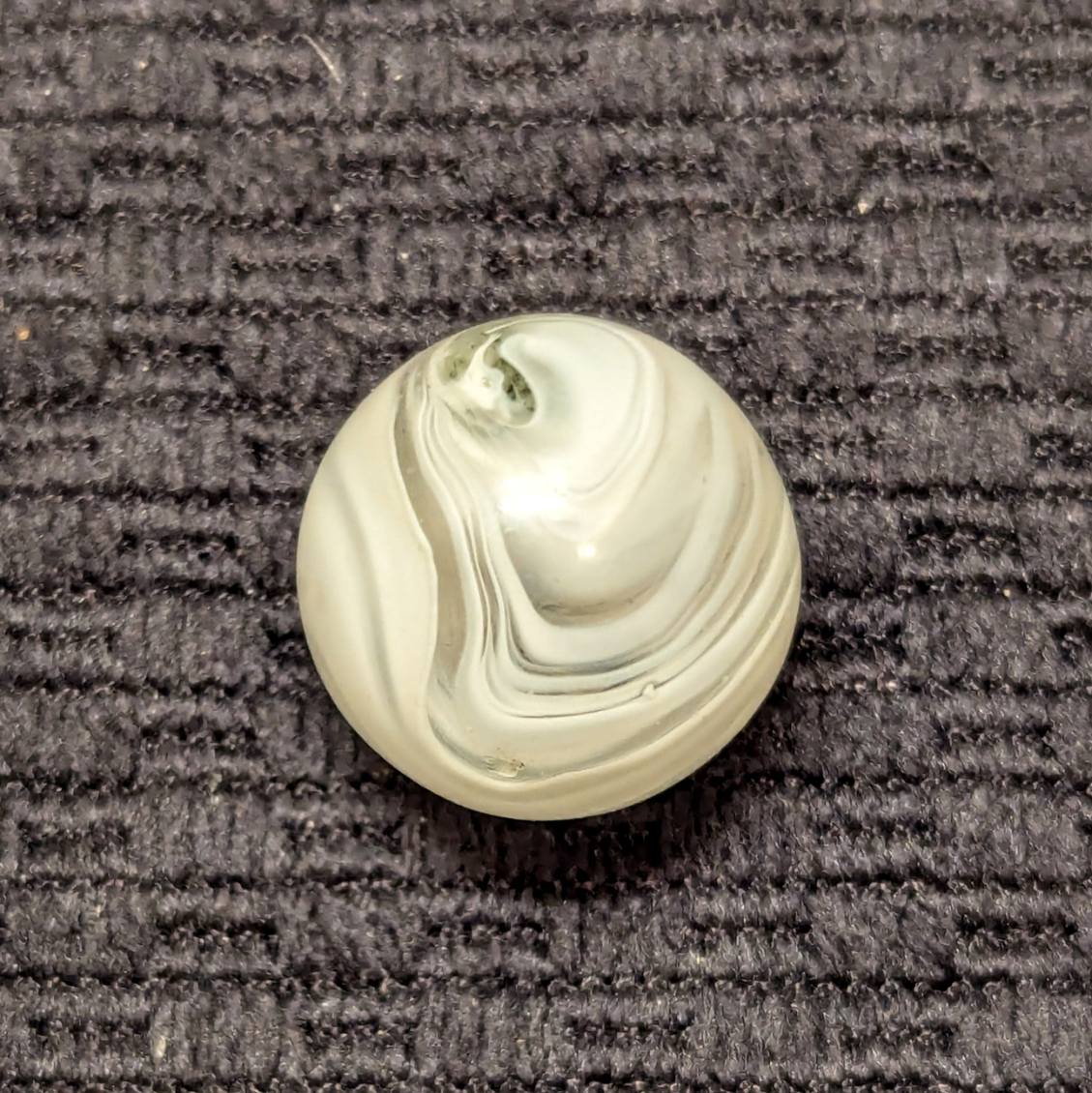 White MFC Slag with great spinning pattern and opposing cut line – a harder to find color. One flea. Mint-.