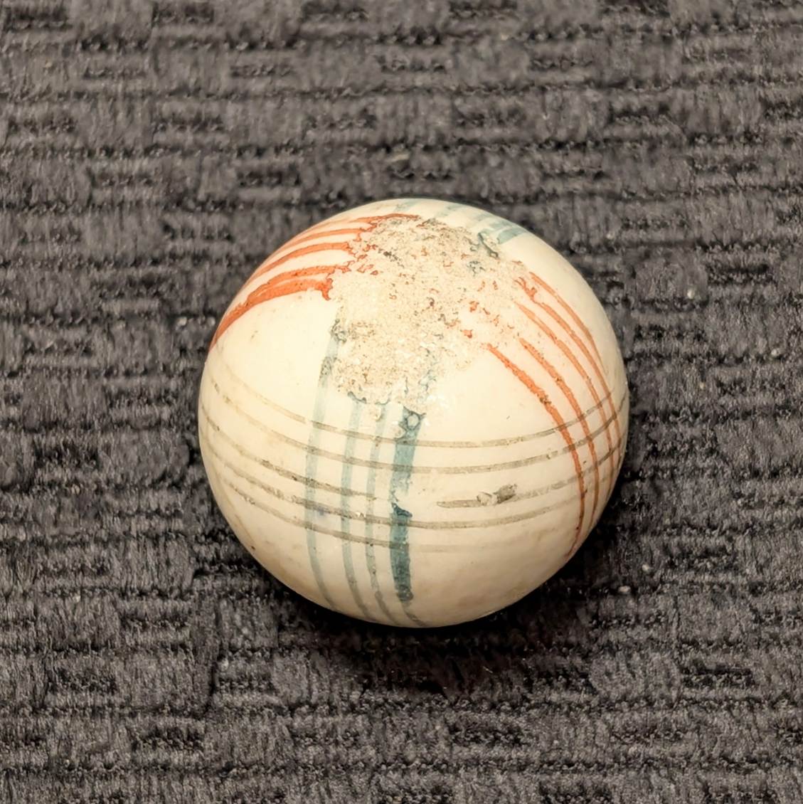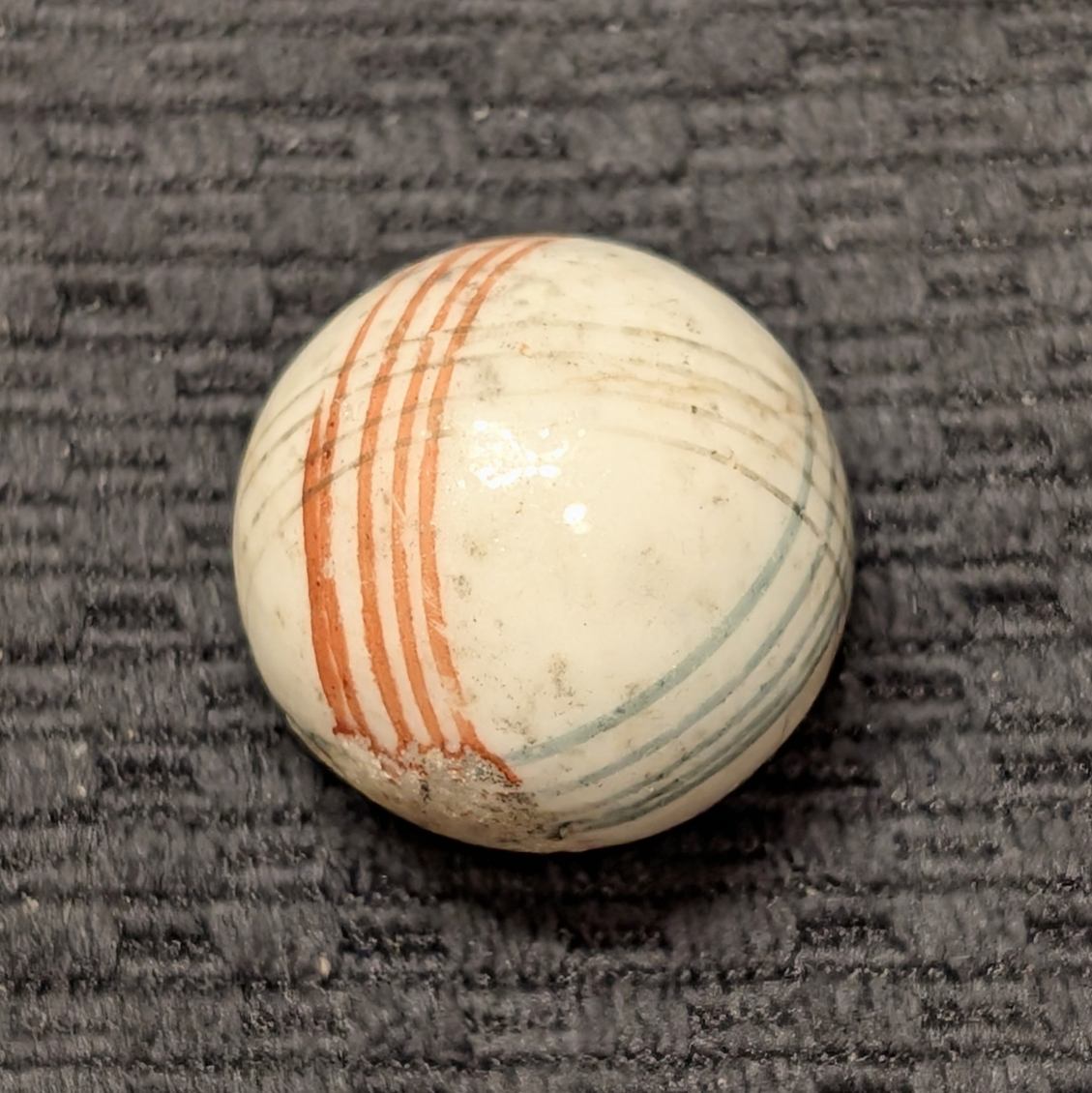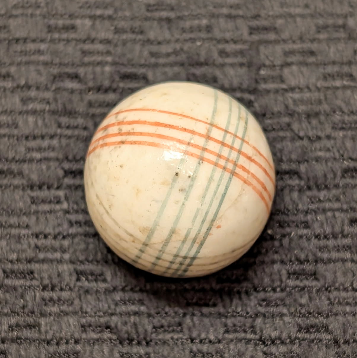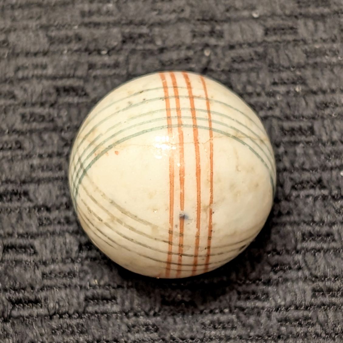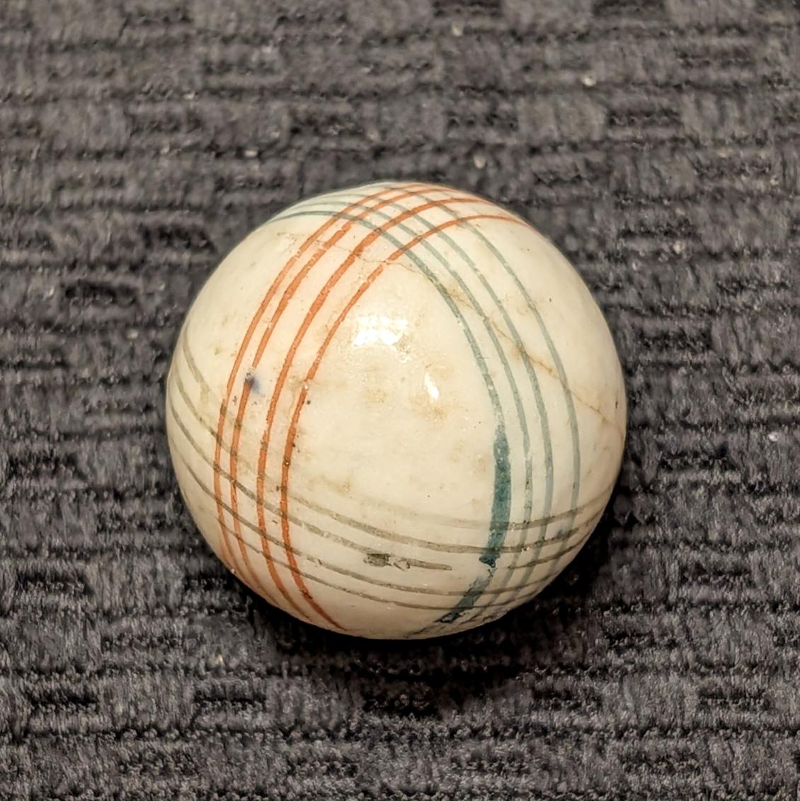 Unusually Big Over 1″ Glazed China w/ 3 Colors of Intersecting Spirals